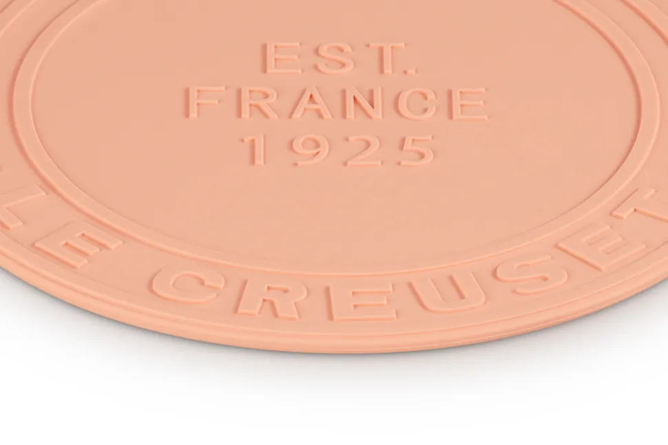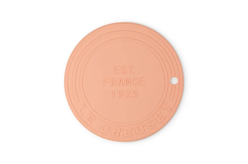 Recognized for its strength and durability, as well as its beauty and quality, Le Creuset produced the first enameled cast iron cookware nearly a century ago. A tradition of maintaining the finest culinary craftsmanship, combined with the latest innovations, means Le Creuset is made for home cooks and professional chefs alike. The Silicone Trivet (est. 1925) in Peche keeps surfaces heat-free under hot pots and pans.