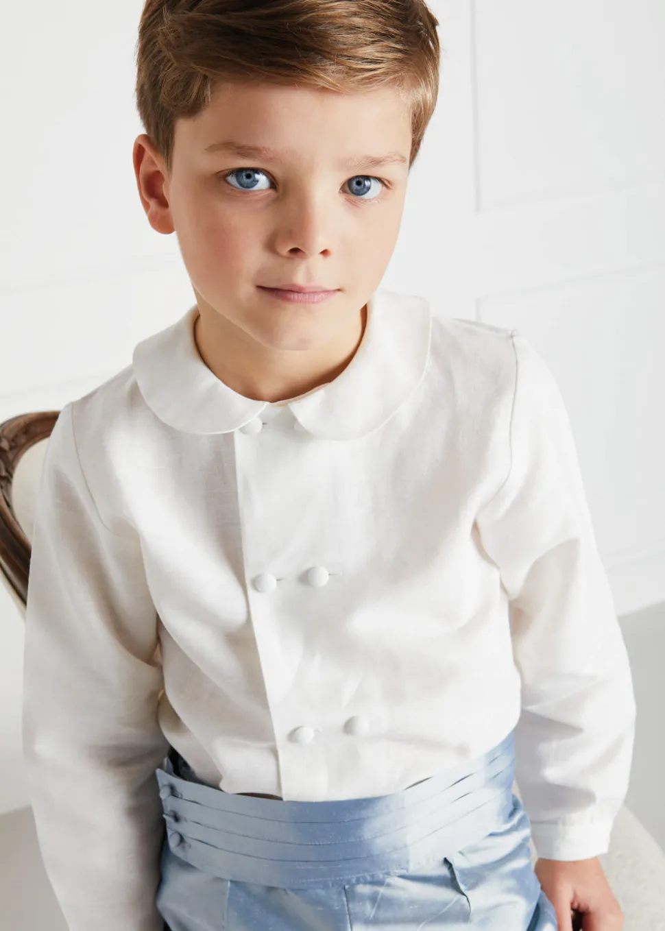 Renowned for exceptional craftsmanship and timeless design, Pepa London creates traditional childrenswear to be treasured and passed down. Each piece reflects the brand’s belief in dressing children like children, combining British style with refined details, comfort, and enduring elegance. The Silk Pageboy Knickerbockers in Blue are crafted from luxurious silk dupion with tailored pleats, buttoned turn-ups, and an adjustable waistband—ideal for weddings and special occasions when paired with a celebration shirt and matching cummerbund.