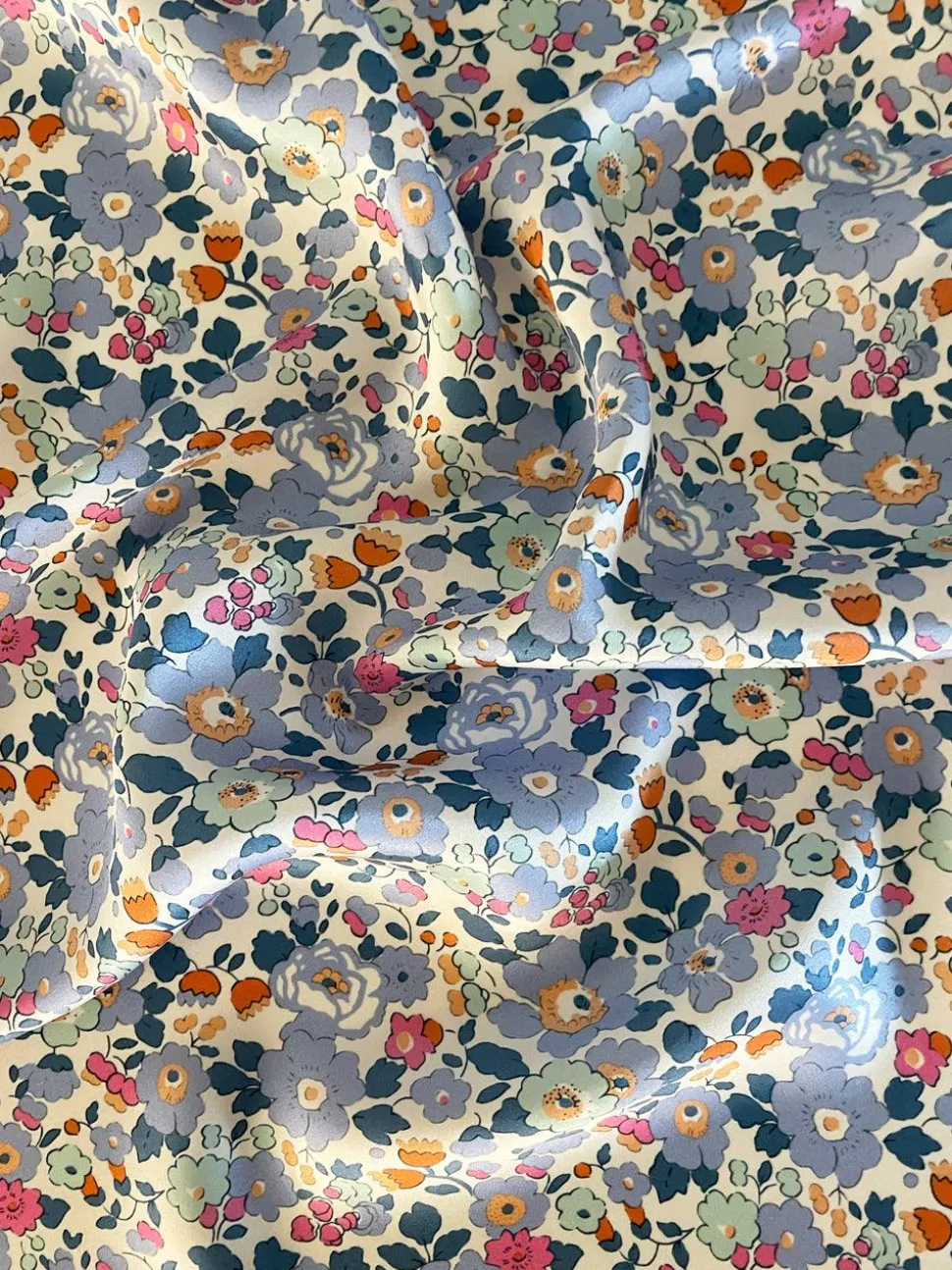100% Liberty Belgravia Silk Satin. 16 Momme. Concealed envelope enclosure. Edge top stitching in a complementary thread color. Naturally hypoallergenic and temperature regulating.