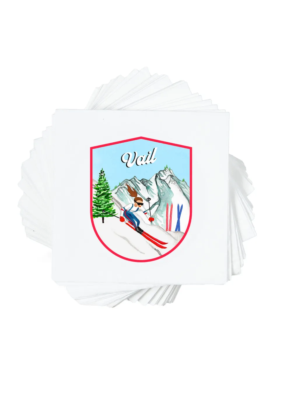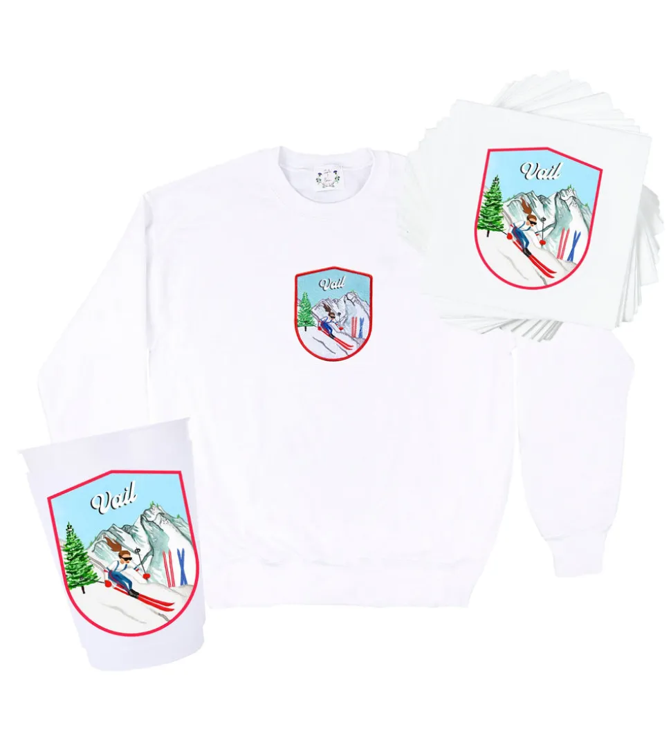 Launched in 2020 by Alexandra Pijut, Thistle and Briar Studio was born of her lifelong love of art and the desire to create hand-painted, whimsical designs for clients to cherish. Elevate your wedding, bachelorette, or special event with a personalized crest that is certain to leave a lasting impression. Hit the slopes with this exclusive Over The Moon x Thistle and Briar Studio crest which features a downhill skier carving up the mountain, a pair of vintage skis, and snow-dusted fir trees. Perfect for a winter bachelorette in the mountains, personalize the retro-inspired font with your winter destination. Now it’s your party.