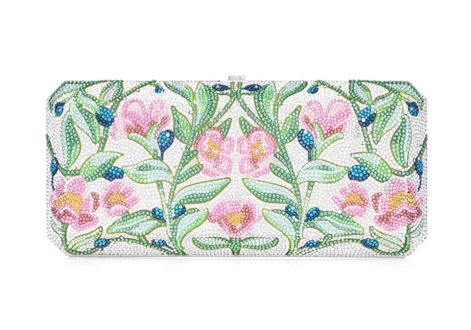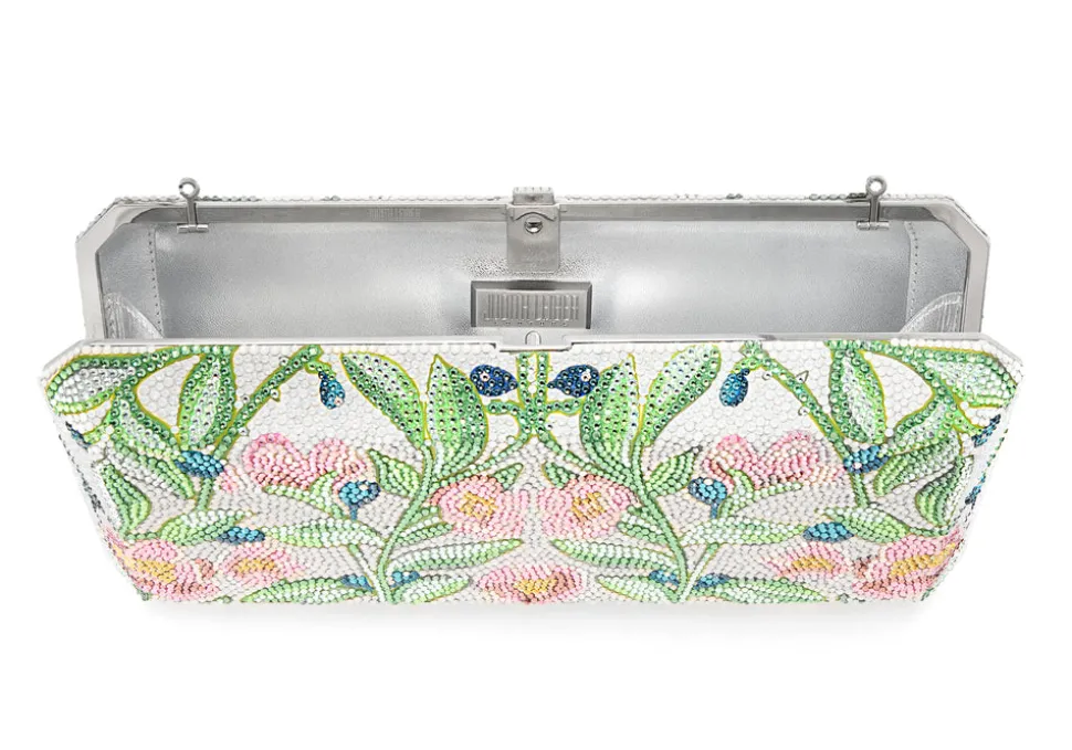 Judith Leiber is an iconic American accessories brand known for its meticulous attention to detail and flawless hand craftsmanship. Counting First Ladies, including Jackie Kennedy, and A-listers from Beyoncé to Jennifer Lawrence among its many acolytes, the label impresses with its signature take on luxury. The Slim Rectangle Flowery Dale clutch is a refined silhouette brought to life with a vibrant display of hand-set crystals in a garden of florals. Its sleek shape and radiant shimmer make it a timeless statement for evening occasions and special celebrations.