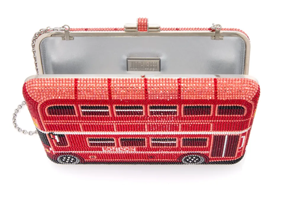 Judith Leiber is an iconic American accessories brand known for its meticulous attention to detail and flawless hand craftsmanship. Counting First Ladies, including Jackie Kennedy, and A-listers from Beyoncé to Jennifer Lawrence among its many acolytes, the label impresses with its signature take on luxury. The Slim Slide Double Decker clutch reimagines a sleek rectangular silhouette with bold crystal embellishment in a dazzling, stacked motif. Both streamlined and striking, this minaudière offers a modern edge while maintaining timeless elegance.