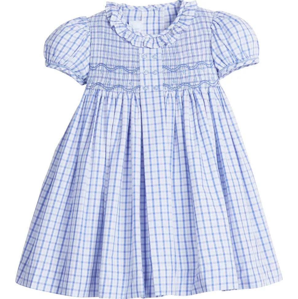 Shannon Latham founded Little English in 2004 with the belief that children should always be well-dressed. Employing hand-smocking, hand-embroidery, and the very best fabrics, Shannon and her daughter design timeless pieces that will be worn for generations to come. The Woodberry Collection features a rich blue plaid and classic smocking, making it ideal for sibling matches and family photos. The Smocked Bridget Dress features puff sleeves, a ruffled Caroline collar, and smocking through the chest with a center button placket. This twirl-worthy dress is a wonderful addition to any little girl’s wardrobe. Baby sister can coordinate in the matching Smocked Bridget Bubble for sweet sibling sets.