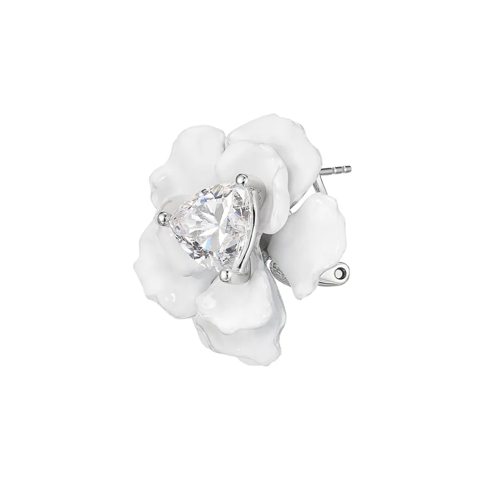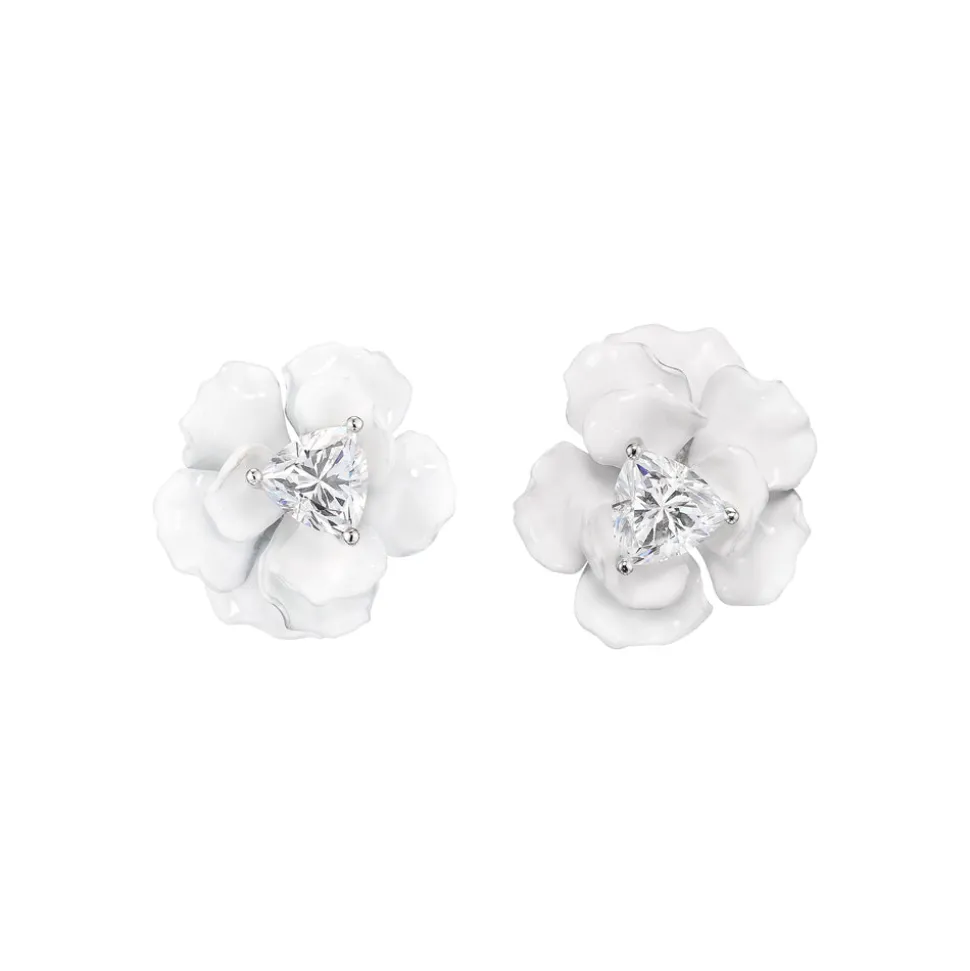 London-based Anabela Chan’s background in architecture and luxury fashion led to the first fine jewelry line to champion laboratory-grown gemstones. Today, its artisanal craftsmanship and sustainable innovations have found a place in the collections of royals, Rihanna, Taylor Swift, and sophisticated women worldwide. Intricately hand-set with laboratory-grown simulated trillion-cut white diamonds at the center on 14K gold posts, 4.85 carats each, the Snowflower Rose Studs are a glorious finishing touch, from any angle.