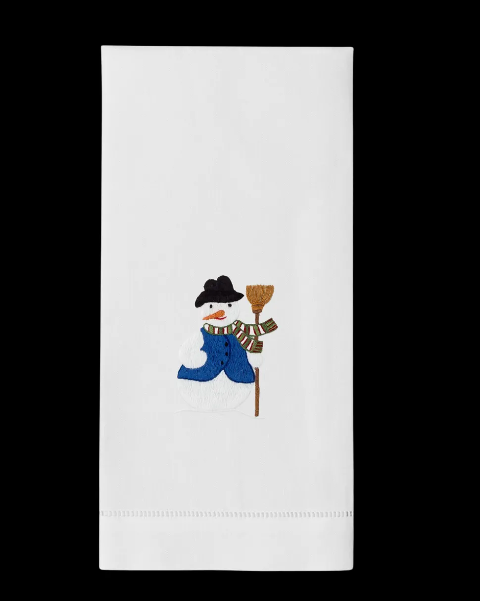 Founded in 2012, Henry Handwork brings joy to the everyday with handmade textiles for the home. Placing tradition and quality at the forefront, the brand resurrects the fading craft of hand-embroidery and needlework, embracing the heritage of finely-wrought European linens. The Snowman Hand Towel is a white, hand-embroidered piece that is finished and hemstitched by hand, and will add a touch of winter charm to any home.