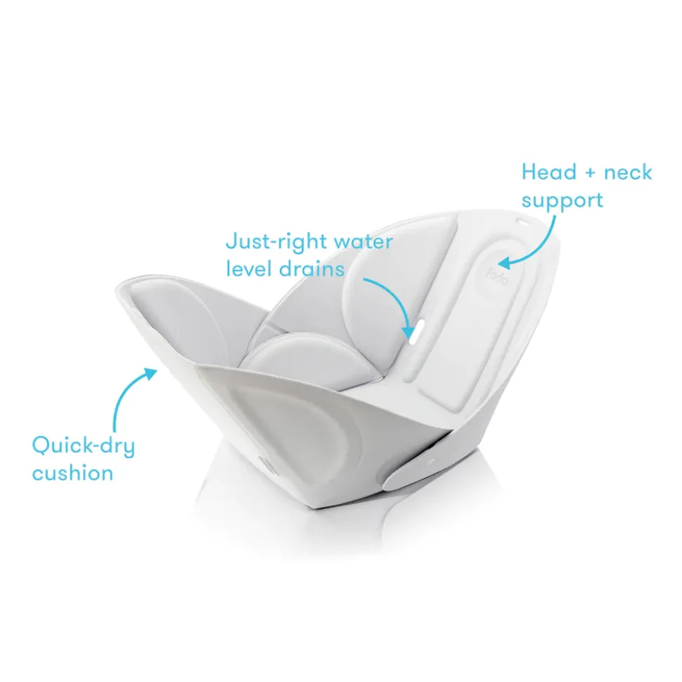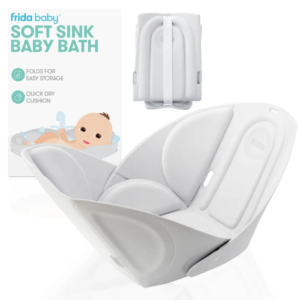 Frida Baby adopts a no-nonsense approach to everything related to babies and beyond, from care products and first aid to postpartum recovery and delivery kits. The brand playfully refers to many of its products as fuss busters. Its straightforward attitude and effective solutions have made it a cult favorite among parents everywhere. The Frida Baby Soft Sink Baby Bath offers a flexible, compact design that fits most sink sizes and shapes, making bath time safe and comfortable for your little one. Its soft, origami-inspired shape cradles and supports your baby’s head and body. With easy setup and cleaning—just two snaps and the quick-dry cushion is machine washable—bath time is a breeze. Perfect for travel, this foldable bather is portable and stores easily. Includes one bather.