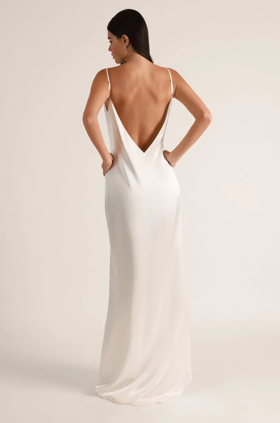 Based in New York, Kiki de Montparnasse is a lingerie, accessory, and ready-to-wear brand for those seeking a refined perspective on sensuality and seduction. These luxury collections are designed to be coveted, experienced, and enjoyed. The Soie V-Back Slip Gown in Ivory embodies quiet confidence and timeless allure. Crafted from pure silk charmeuse, it features a sleek, sculpted front, a daring low V-back, and a sensual side slit. Adjustable straps ensure an impeccable fit, creating an effortlessly elegant silhouette meant to captivate from every angle.