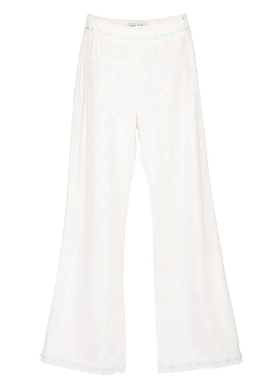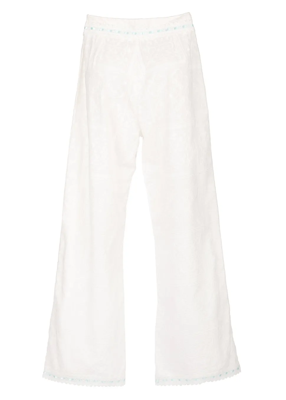 Every WAIMARI piece has a story. Started by two Colombian sisters, the brand is passionate about what goes into their resort wear, embracing the traditions of the local craftspeople they employ and focusing on both the sustainability and quality of their investment pieces. Exclusive to Over The Moon, the Something Blue Pants in White offer a modern take on bridal-inspired dressing, crafted from white patchwork fabric with delicate texture and tonal dimension. Designed to pair effortlessly with the matching top or elevate a minimalist look, these trousers lend a tailored, feminine edge to any resort-ready ensemble.