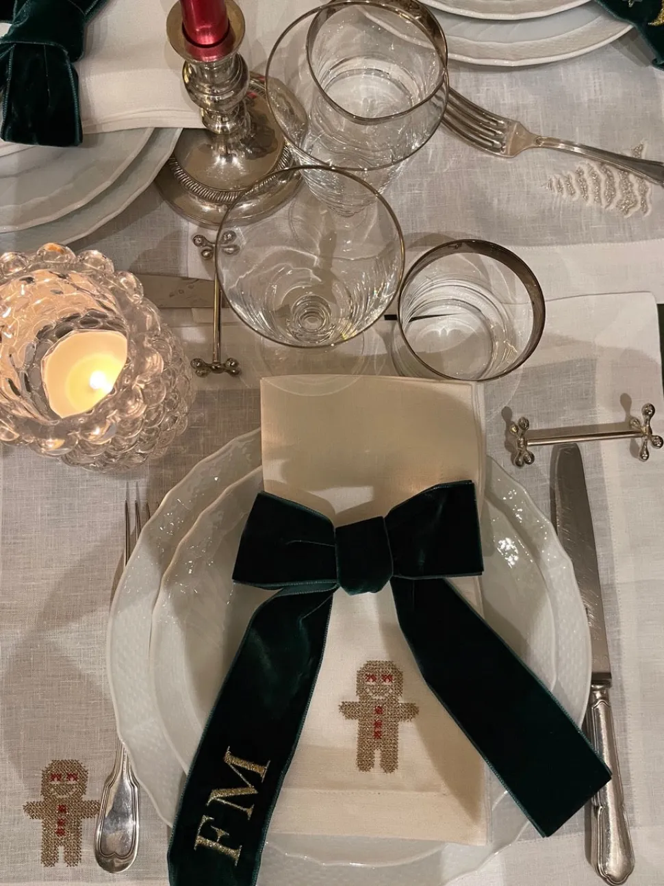 Founded in 2020 by three friends, TriChi looks to the intersection of the Mediterranean, Atlantic, and Anatolia for the inspiration for their superior clothing and homewares. Environmentally friendly manufacturing, the highest quality fabrics, and a passion for great design combine in the brand’s uniquely tasteful approach. TriChi’s linen napkins are exemplary tabletop additions, regardless of how formal or casual the affair. The Sparkling Ginger Bread Napkin, Set of 4, present themselves in a delightful shade of snow white—and are elegantly decorated with a gingerbread man.