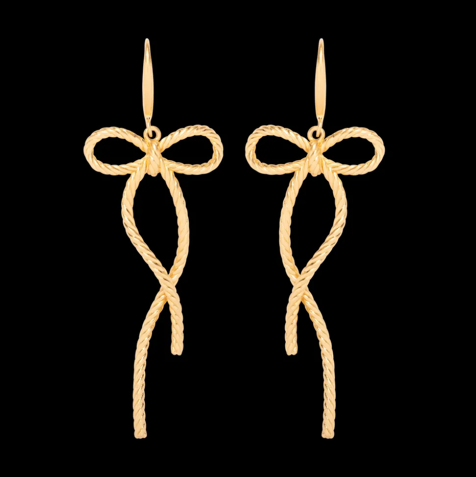 Loren Barham founded her jewelry line in 2005 as a means to reconnect with the vintage jewels that inspired her as a child. Today, the dynamic, artistic, original pieces of Loren Hope, designed at their flagship store in Newport, Rhode Island, serve as a bridge between nostalgia and thoroughly modern women everywhere. The Spencer Bow Earrings boasts metal rope-textured bows with elongated ribbons twist in an elegant swirl add just the right amount of lady-like drama to any look.