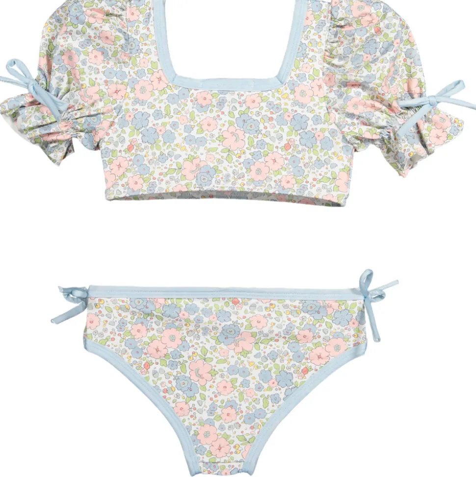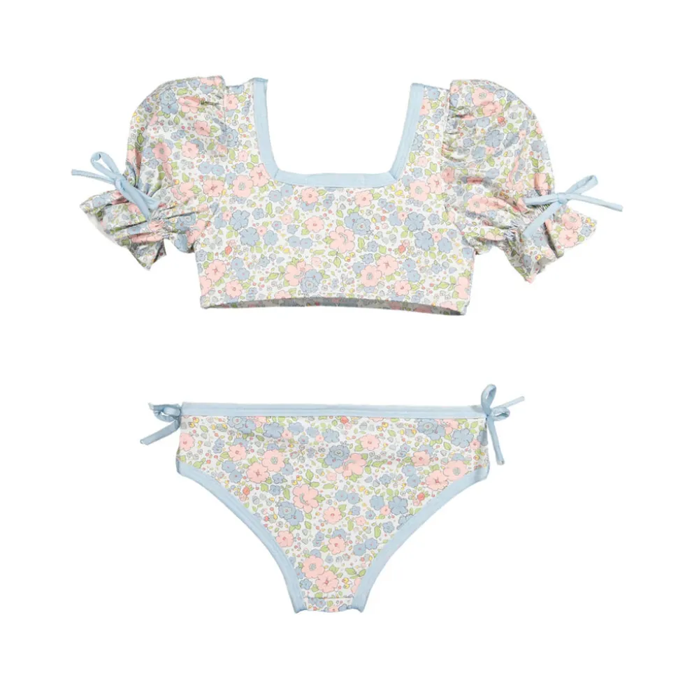Sal & Pimenta is dedicated to providing your kids with clothes that reflect their happy and carefree way of life. Crafted in small ateliers in and around Lisbon, with every pattern approved by the founder’s young daughters, these are clothes designed to bring joy to kids and parents alike. The Sprinkles Bikini offers an ideal combination of coverage and cuteness with short puffed sleeves, tied at the cuffs and bottoms delicately trimmed in blue boasting their own matching ties on either side.
