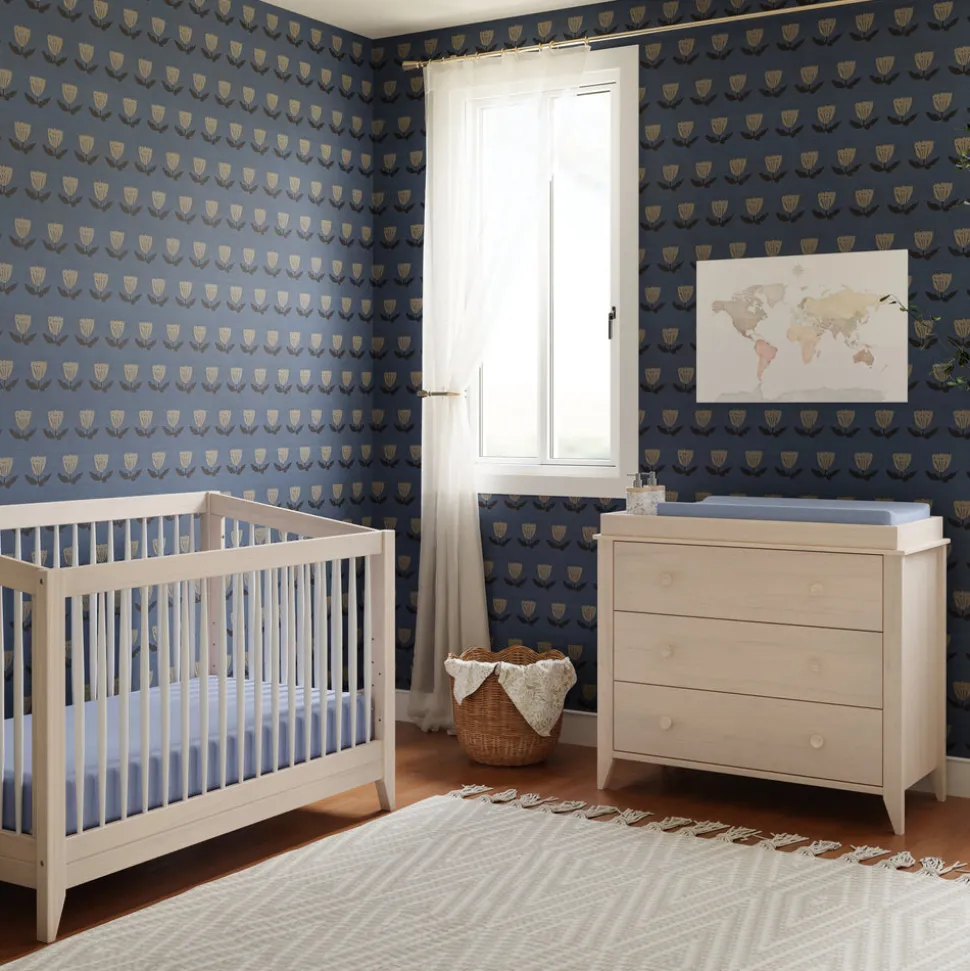 Designed in Los Angeles, babyletto creates stylish, modern nursery furniture with a focus on safety, sustainability, and intuitive design. For over a decade, the brand has empowered parents to craft spaces that reflect their values and individuality. The Sprout 3-Drawer Changer Dresser with Removable Changing Tray in Washed Natural & White blends mid-century modern styling with subtle craftsman details. With three spacious drawers and a removable changing tray, this versatile piece transitions beautifully from nursery to big kid room.