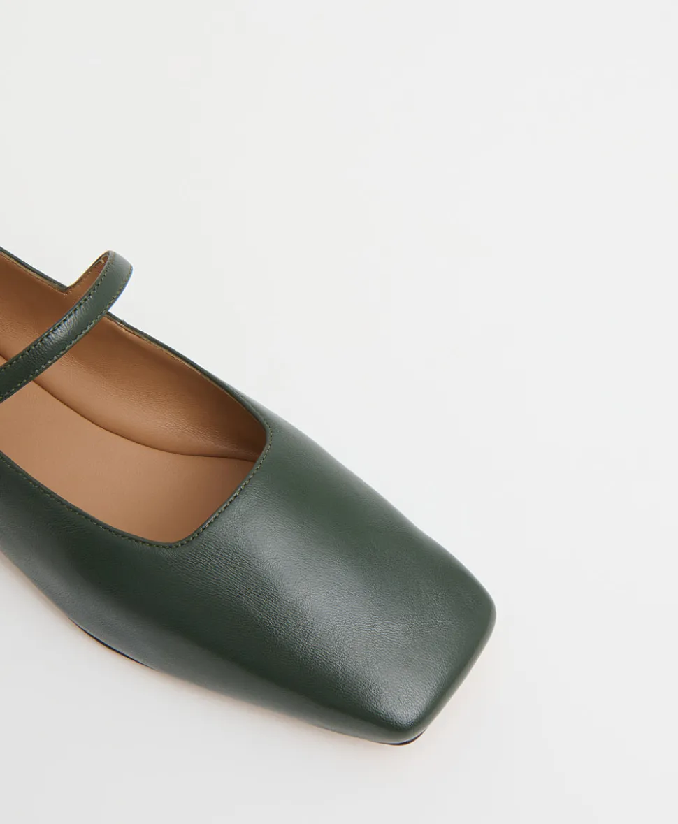 Founded in 2013, Mansur Gavriel redefines luxury through its distinctive approach to color and form. Born out of a passion for art and design, Rachel Mansur and Floriana Gavriel created two simple silhouettes—launching with just a bucket and tote. The brand’s designs, dreamt up in New York and crafted in Europe, continually challenge the notions of what expression can be. The Square Toe Mary Jane in Moss brings a grown-up elegance to a nostalgic silhouette, featuring smooth lambskin leather, a modern square toe, and a dainty strap for a secure fit.