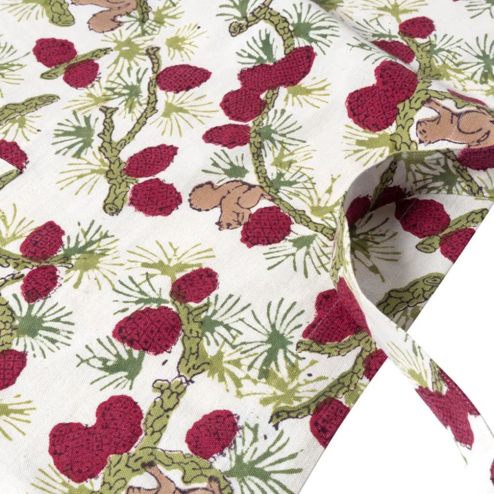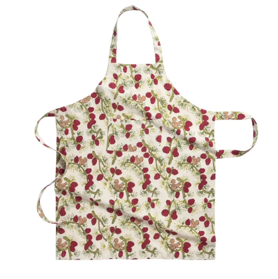 Idyllic landscapes, sumptuous colors, and the vibrant beauty of Southern France describes Couleur Nature. This brand of hand-painted table linens aims to bring a Provençal sense of effortlessness, rich culture, and joie de vivre to your life and home—no matter where you live. With pines reminiscent of Provence, The Squirrel & Pinecone Apron in Red & Brown reflects the festive nature of squirrels and the holiday season. This charming design is suitable for formal and festive holiday events alike. Skilled artisans carefully handprint with classic French country styling using a time-honored technique, resulting in a singular piece of craftsmanship. This French linen cooking apron is quality-constructed, chic and practical. Bring the romance of Southern France to your home with richly colored, hand-printed cotton linens.
