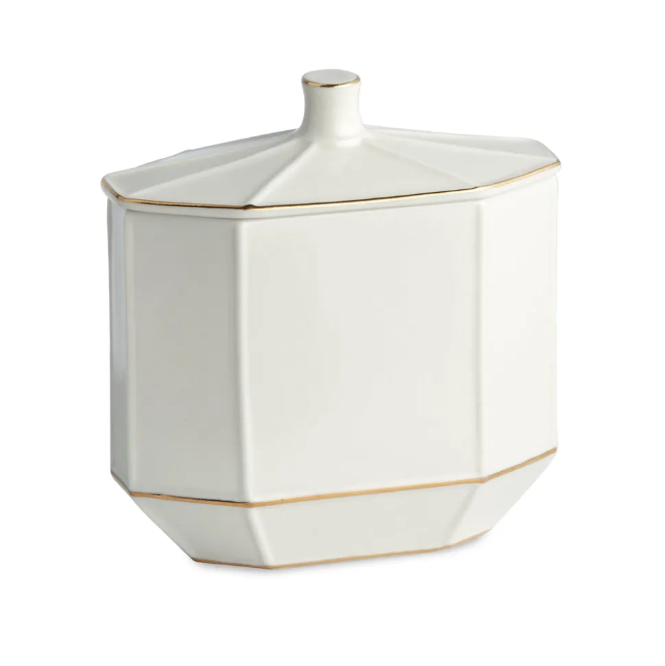 Based in New York’s Garment District, Kassatex’s linens bring more than just a sense of luxury into the modern home. Founded with old world values and a contemporary sensibility, their towels, sheets, and home goods bring the very best of Manhattan living, with texture, comfort and style. The St. Honore brings the glamour and pastoral bliss of the Spanish Islands to any restroom. The St. Honore Cotton Jar is luxuriously decorated in hexagonal shapes and gold accented details.