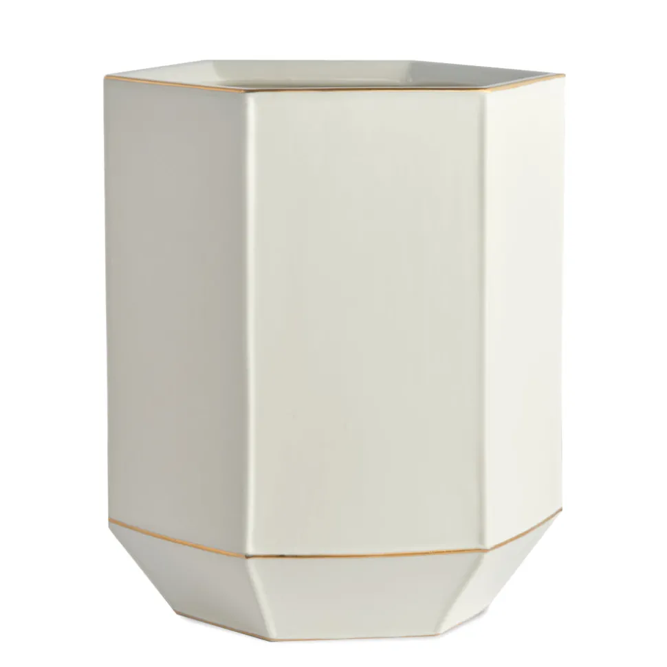 Based in New York’s Garment District, Kassatex’s linens bring more than just a sense of luxury into the modern home. Founded with old world values and a contemporary sensibility, their towels, sheets, and home goods bring the very best of Manhattan living, with texture, comfort and style. The St. Honore brings the glamour and pastoral bliss of the Spanish Islands to any restroom. The St. Honore Waste Basket is luxuriously decorated in hexagonal shapes and gold accented details.