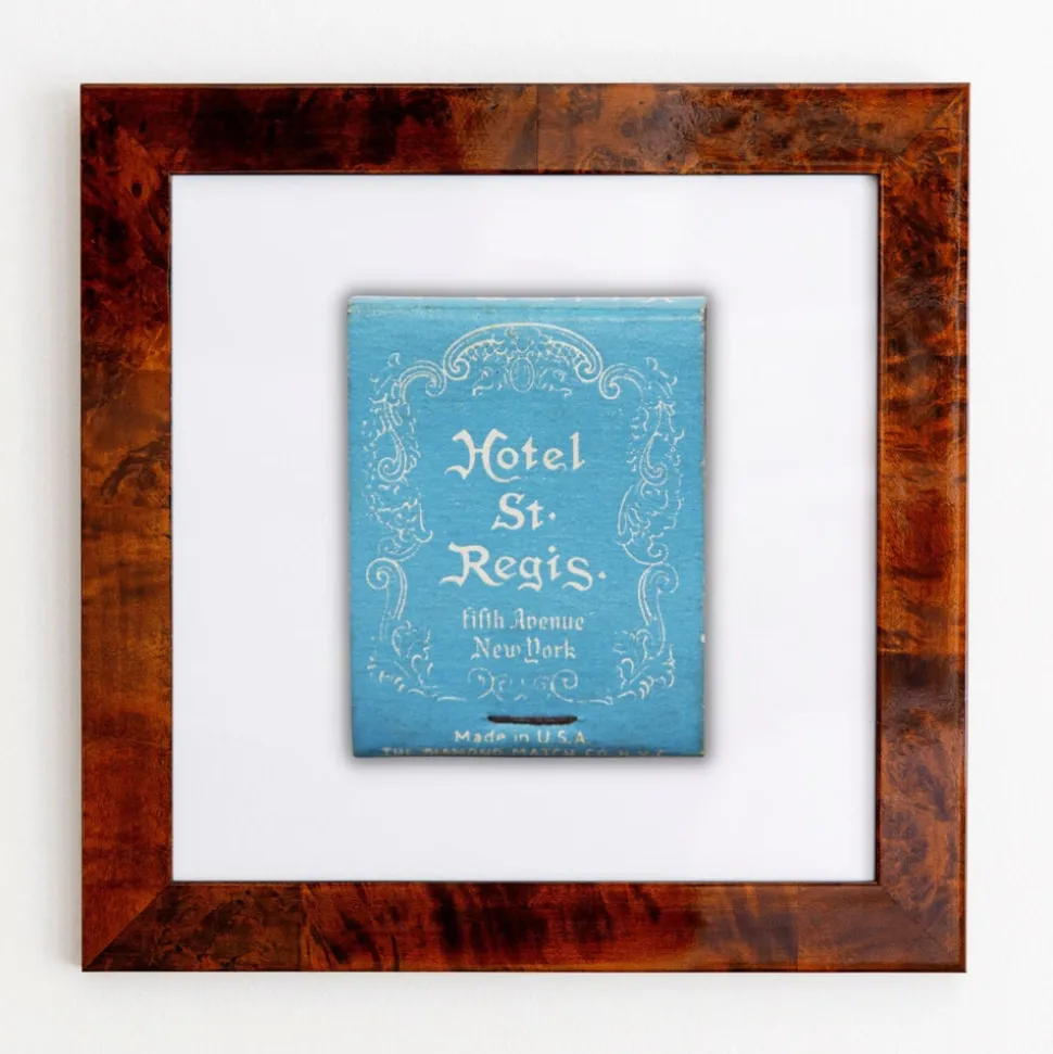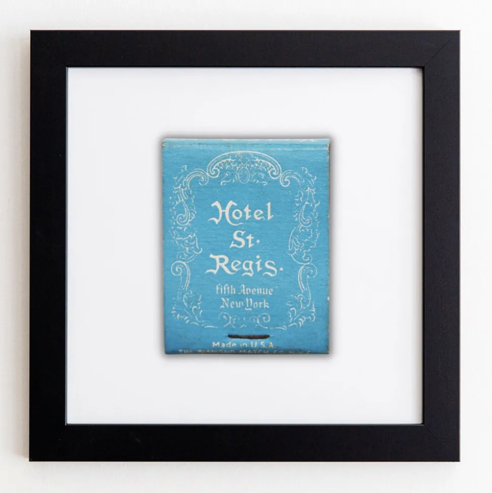 Handcrafted in the heart of Atlanta, Match South frames vintage matchbook images of professional sports teams, golf courses, restaurants, and hometown favorites. Ignited in 2015, the brand was created as a passion project to kindle love and support the restaurant industry—designing high-quality photographs of matchbooks from every corner of the country. Paying homage to one of the Big Apple’s greatest landmark hotels, the St. Regis Hotel New York frame makes for an effortless styling piece. Available in three colors, these frames have a white flat profile with clear acrylic for safe shipping.