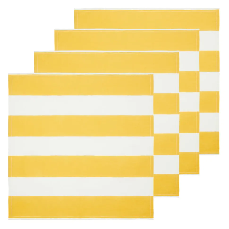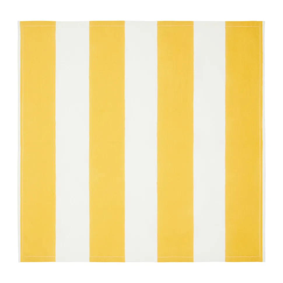 Idyllic landscapes, sumptuous colors, and the vibrant beauty of Southern France describes Couleur Nature. This brand of hand-painted table linens aims to bring a Provençal sense of effortlessness, rich culture, and joie de vivre to your life and home—no matter where you live. Add a touch of effortless French elegance to every meal with the St. Tropez Napkins in Yellow, Set of 6. Crafted from a heavyweight linen and cotton blend, these napkins feature a wide cabana stripe design that beautifully complements formal, festive, and casual events alike.