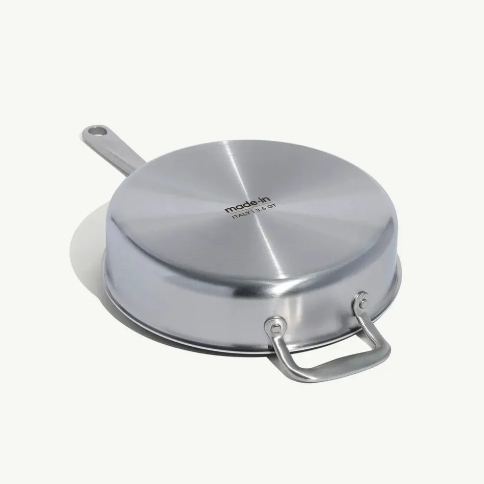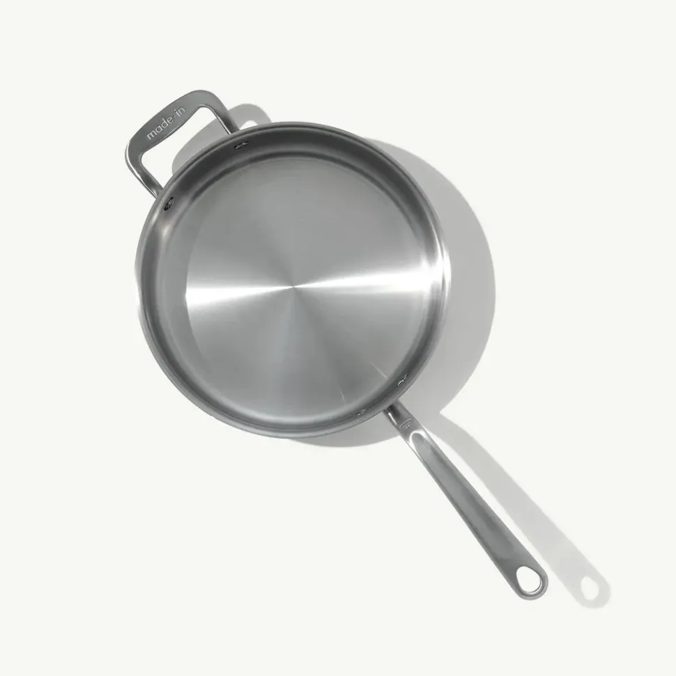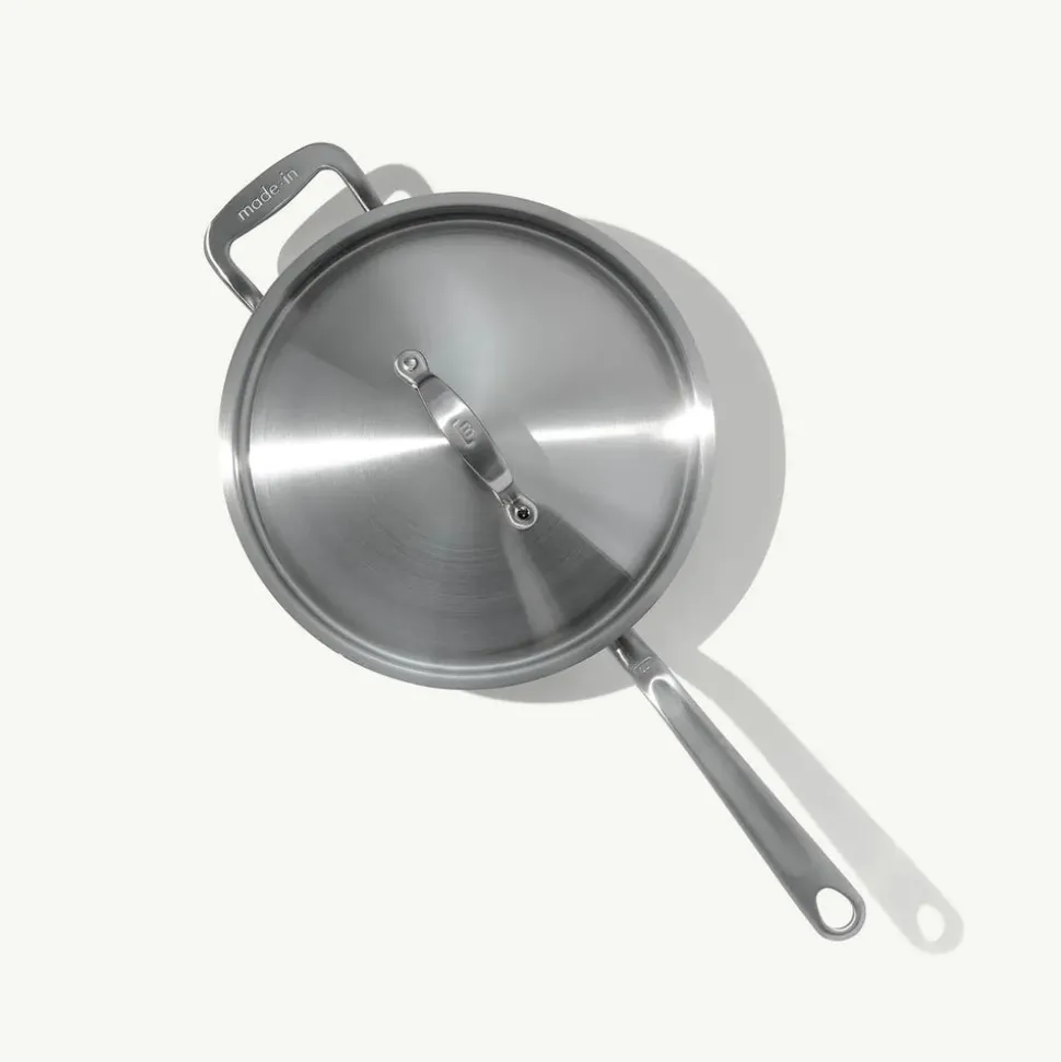 Born out of a 100-year old, family-owned restaurant supply business, Made In brings restaurant-quality, performance kitchenware to home cooks around the world. The brand sources the highest quality raw materials and designs products to the exacting standards of the world’s best chefs. The Stainless Clad Saute Pan surface area and shallow depth increases both the rate of evaporation and the quality of searing, while its straight walls make turning all that fond into pan sauce far tidier than it would be in a frying pan. The 5-ply construction also cleans up in seconds, because it prevents hot spots and stuck-on messes.
