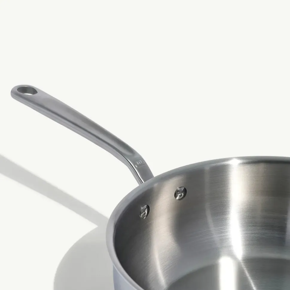 Born out of a 100-year old, family-owned restaurant supply business, Made In brings restaurant-quality, performance kitchenware to home cooks around the world. The brand sources the highest quality raw materials and designs products to the exacting standards of the world’s best chefs. Like the rest of the Stainless Clad Cookware, this Stainless Clad Saucier is crafted in Italy from 5 layers of metal for improved heat conduction and distribution. It heats evenly and responds instantly to temperature changes, giving more control when sauteeing, deglazing, and reducing. It also cleans up in seconds, as it prevents the hot spots that lead to stuck-on messes.
