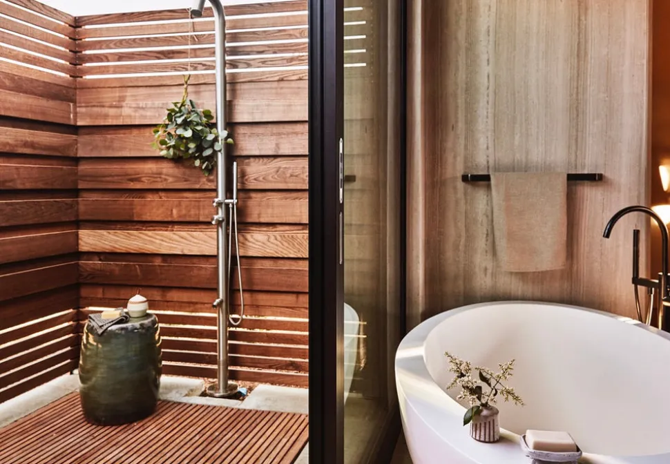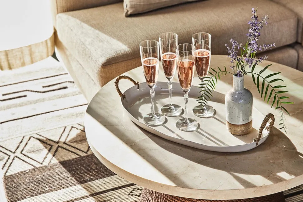 Modern and textural, the rooms at Stanly Ranch reflect Napa’s laidback lifestyle. These modern farmhouse structures nod to ranch life while marrying progressive design with open layouts, seating areas in rooms, and large doors that open up to generous private terraces with fire pits. The King Rooms allow guests a soothing space to unwind after a day spent exploring the valley. With large doors that open up to private terraces with lounge seating, a dining area, and a fire pit, indoor and outdoor space is blurred. Rooms feature a king bed and a sofa with a coffee table for additional space to lounge.