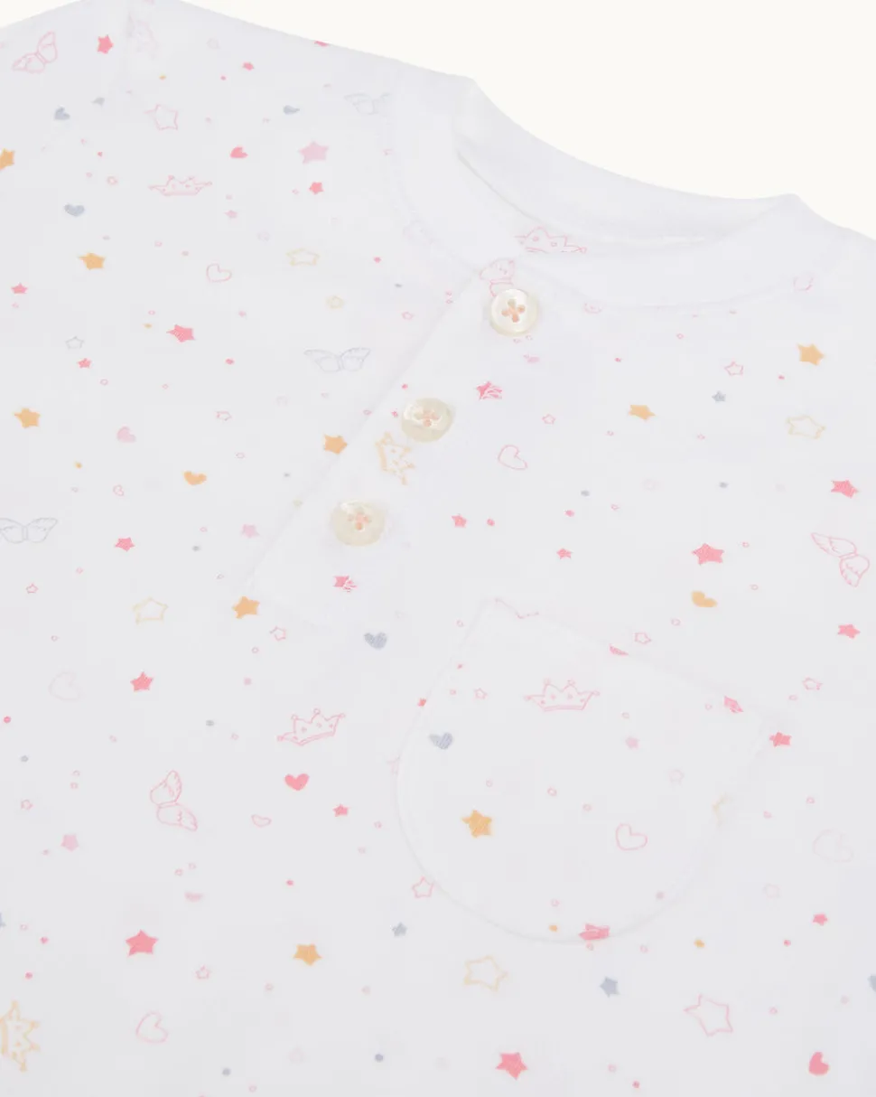 Princess Marie-Chantal of Greece’s eponymous label is known internationally for its unmatched style and the quality of materials—like their organic, hand-picked Pima cotton—which lies at the heart of their baby essentials and contemporary children’s clothing. Made from the softest Pima Cotton, the Star & Crown Pyjama in Child Pink features the beautiful signature print. Designed with comfort and quality in mind the Star & Crown pyjama is available as part of the Family Matching Collection. Designed to keep your little one cozy.