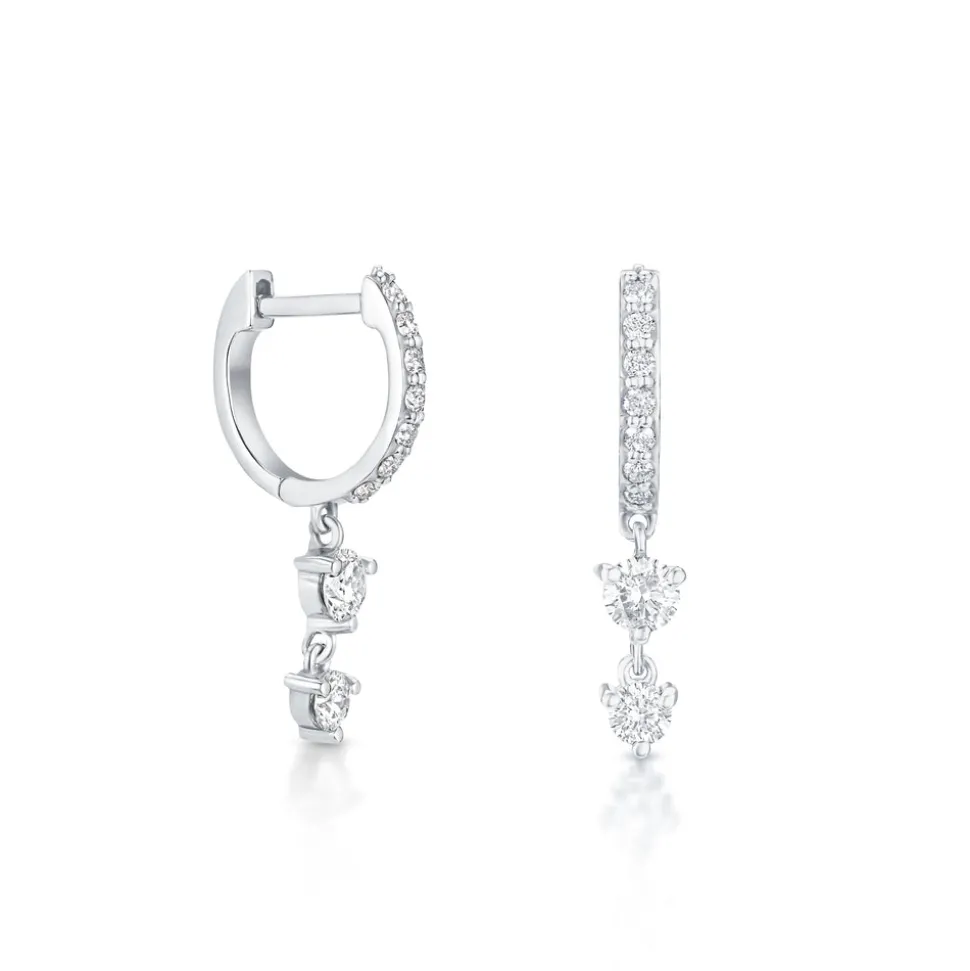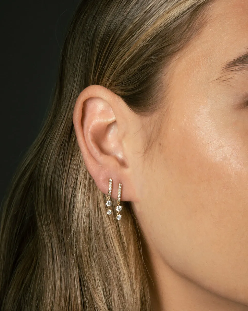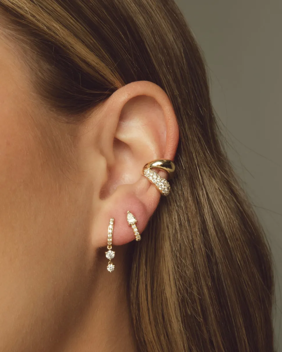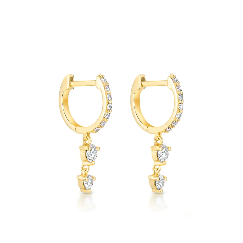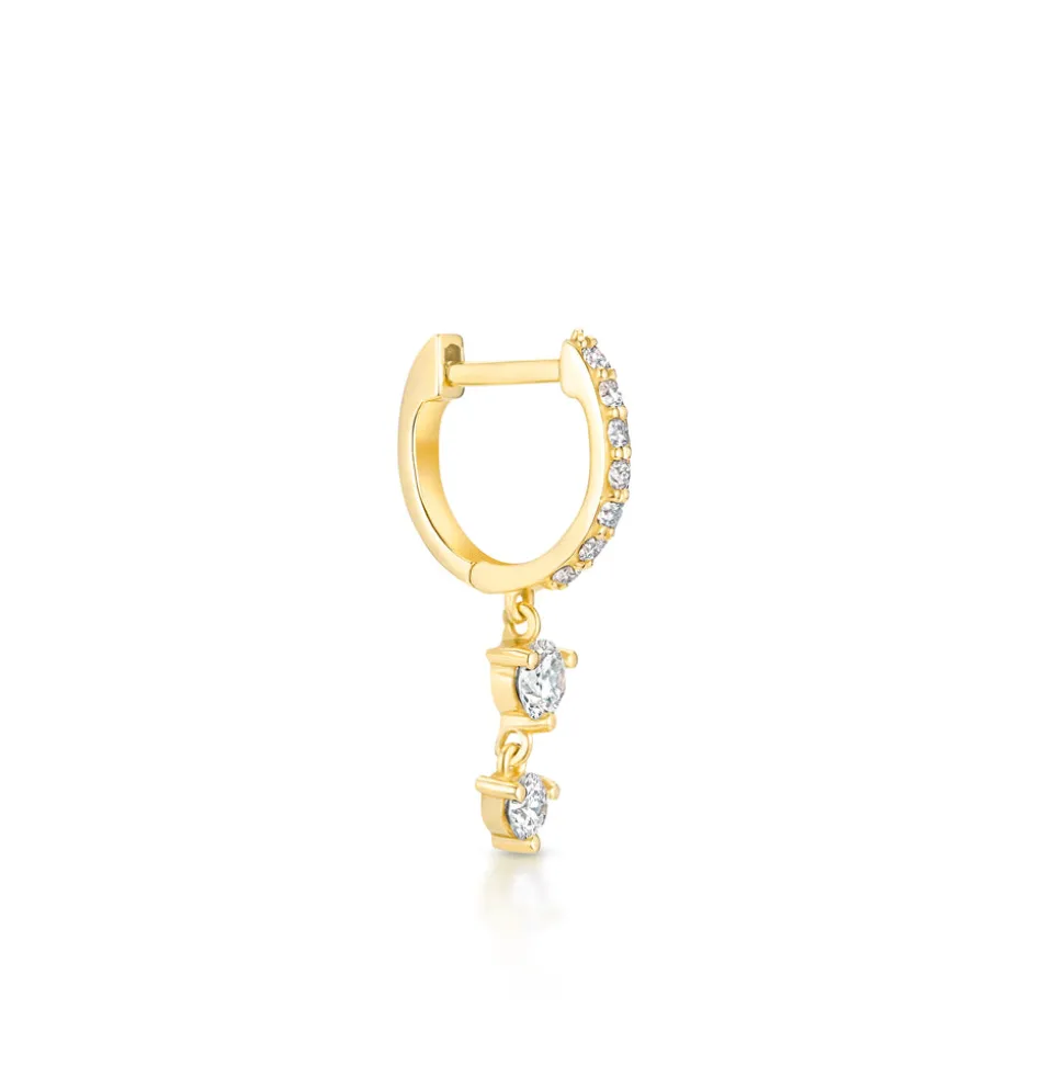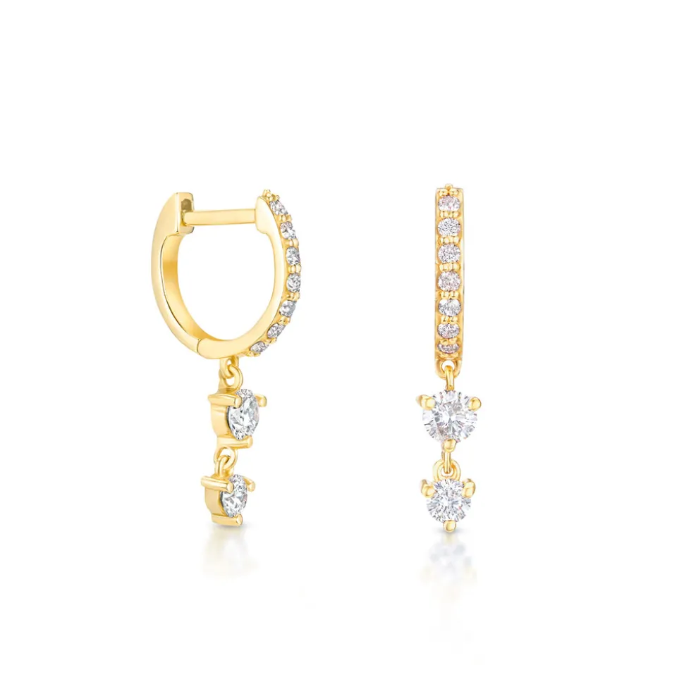 Born into a family of fine jewelers, sisters Oren and Yarden Katz use recycled 14 karat gold and ethically sourced diamonds to craft their contemporary pieces in their Downtown Los Angeles studio. Worn by the likes of Taylor Swift and Jessica Alba, the jewelers are inspired by antique and custom pieces found in their mother’s jewelry box, and each new collection brings a uniquely modern interpretation of heirloom design and technique. In the Stardust Huggies you’ll find a classic huggie silhouette, accompanied by two graduating diamonds, dangling gracefully as they catch the light.