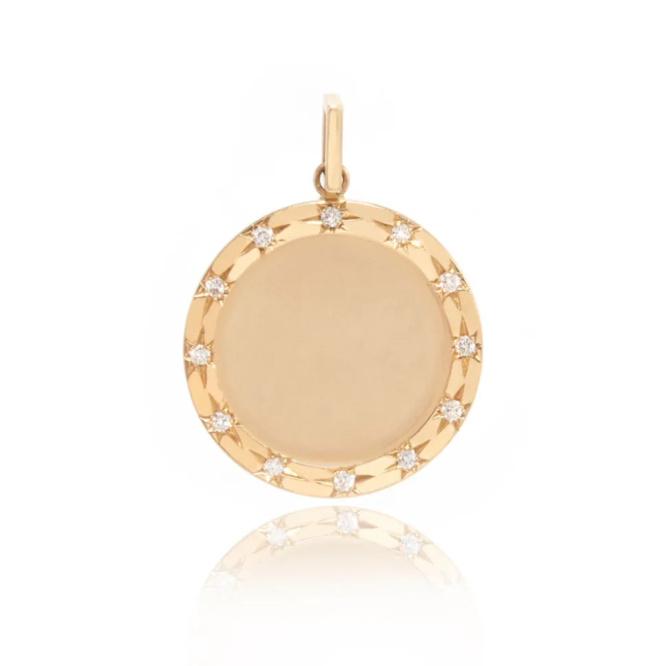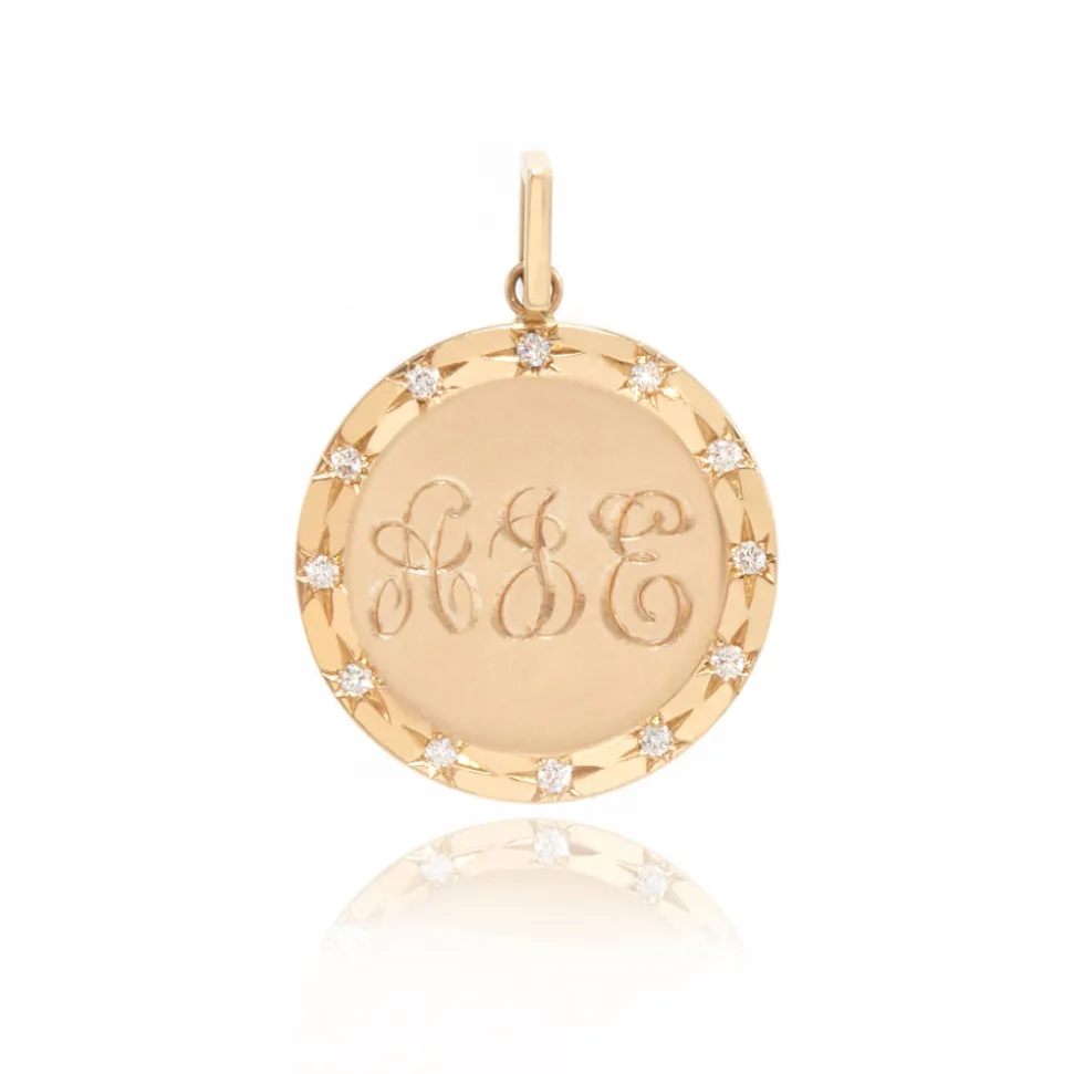 From her studio in New York City, Ashley Zhang designs one-of-a-kind fine jewelry that will last a lifetime. With a matte satin finish in the center and a halo of hand-carved diamond stars, the Starlight Disc Pendant adds radiance to the décolleté. Customize the space with an engraved name, a date, or an initial or three.
