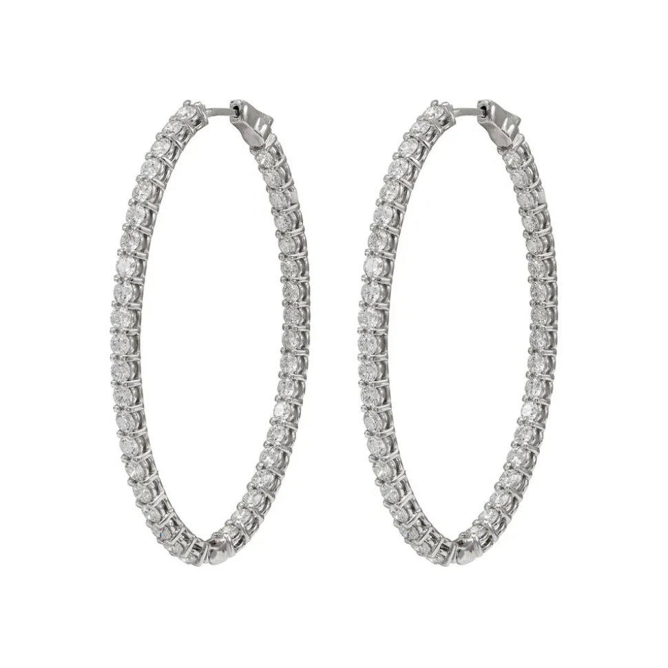Luxury jewelry house, RUCHI New York, specializes in creating unique and versatile pieces that are exquisitely handmade and boast an heirloom quality. Crafted with precision in a variety of metals, each piece by this brand is designed to be cherished as a symbol of enduring love, whether it’s a stunning diamond ring or a timeless necklace. The Starlight Grande Diamond Hoop Earrings are elongated oval hoops with brilliant cut diamonds.