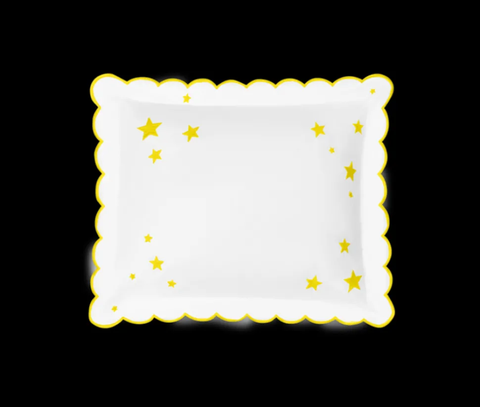 For nearly 100 years and three generations, Matouk has handcrafted luxury linens from the world’s finest materials. Their dedicated artisans in Fall River, Massachusetts are committed to creating the highest quality, most-loved bed, bath, and table linens for your home. The Stars Mini Pillow features an embroidered star motif and a gently scalloped edge. We love it as a gift for baby showers, weddings, graduations, and more.