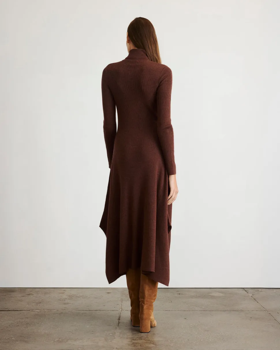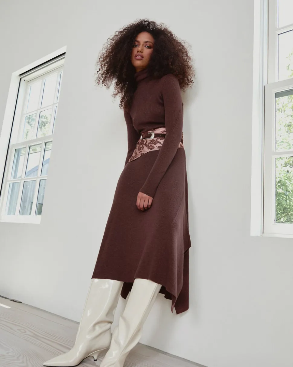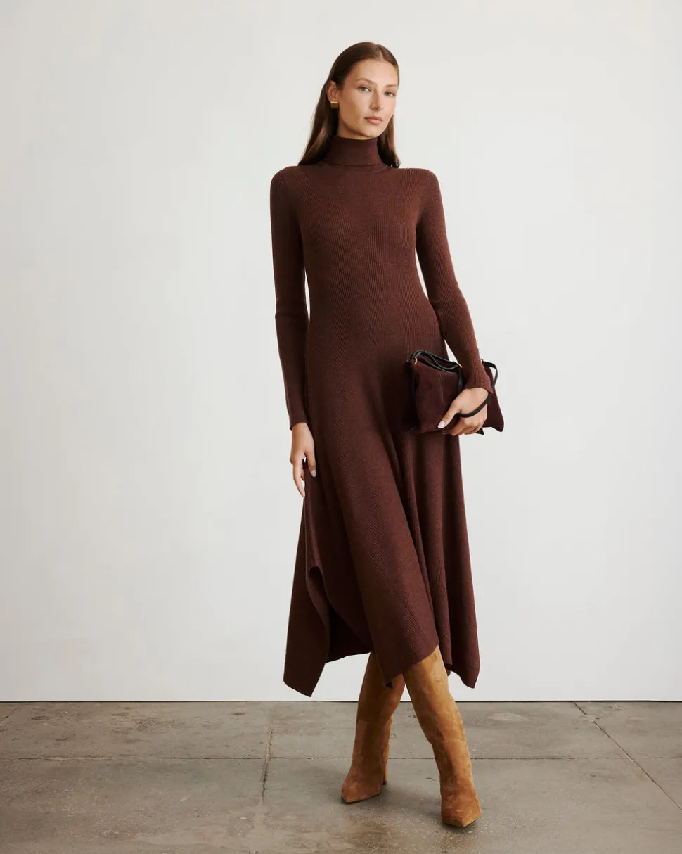 Creating clothing that inspires confidence, celebration, and community, Tanya Taylor is a New York-based womenswear brand whose mission is to provide practicality and style to a range of ready-to-wear in inclusive sizes. Each collection is thoughtfully designed through the artful use of color, texture, and original hand-painted prints. As chic as it is easy, the Steffi Dress in Chocolate Melange is this season’s must-have. Designed in a luxe pointelle knit, Steffi is a polished silhouette featuring a turtleneck and handkerchief hemline that offers modern, flattering detail. Style it with boots or a simple heel for a day-to-night look that feels refined and feminine.