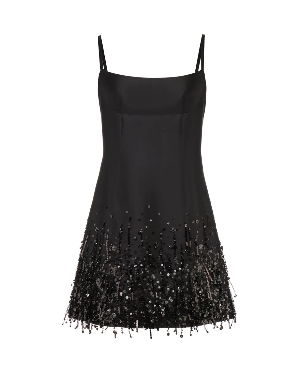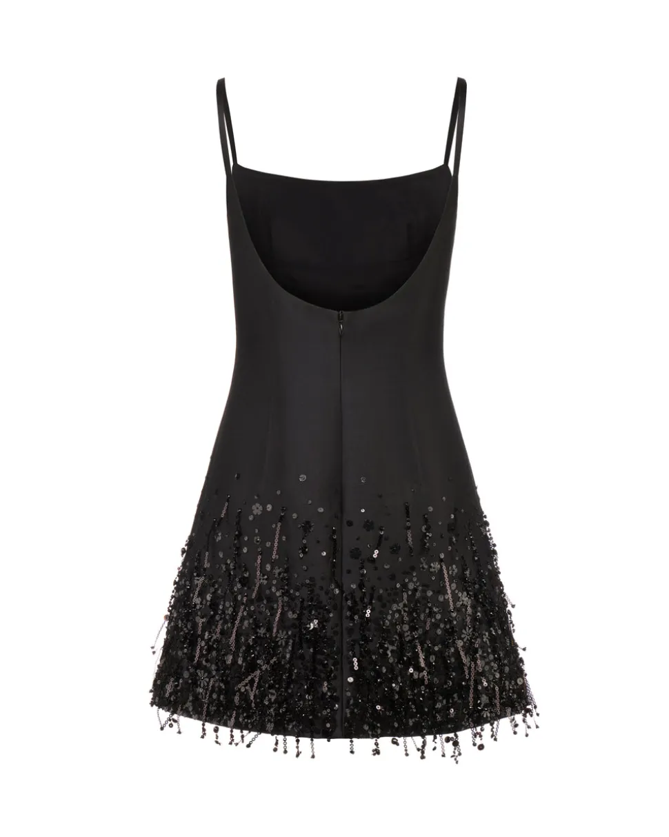 A graduate of the Savannah College of Design, award-winning Alexandra Pijut’s namesake line arrives from her studio in New York, offering luxe ready-to-wear pieces that distinguish themselves between femininity and practicality. This slim cut, mini dress features the details you love from our original, bridal Stella Dress, but now in black. Ideal for a special occasion, the hem is highlighted by tonal sequins, fringes, and flowers.