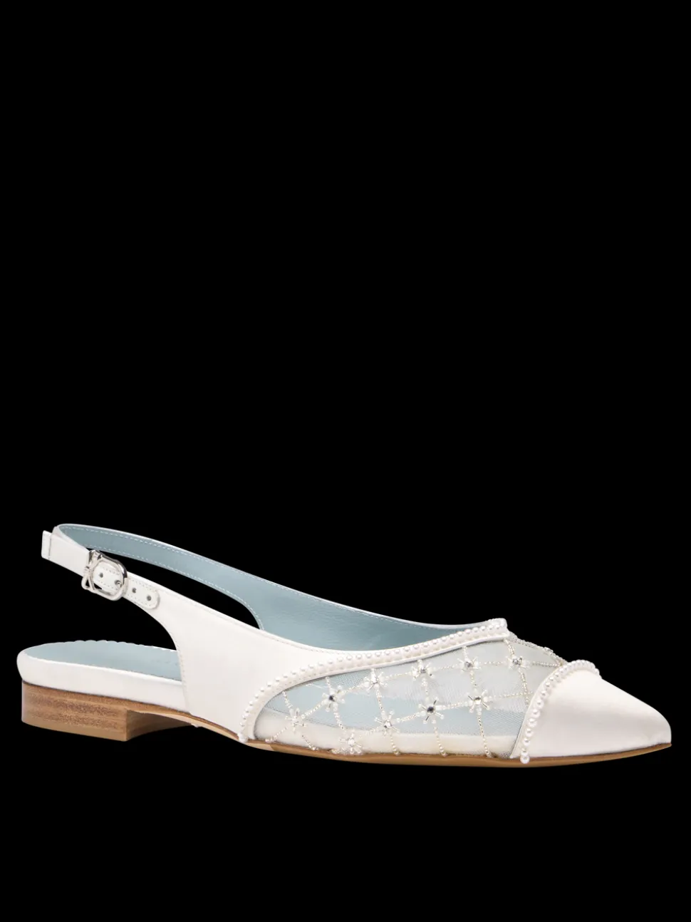 Sarah Flint sources the most exceptional materials from triple-dyed Italian suedes to jacquards woven in 300-year-old British mills. Once crafted in Italy, shoes go through rounds of prototyping and fit-testing to ensure comfort and durability. Introducing the Stella Slingback Flat in White Satin, an all-new bridal style that is as special as your big day. Crafted in luxurious white satin, this shoe features a delicate “Something Blue” lining and a scalloped edge, offering a subtle yet personal touch. Hand-beaded and embroidered with exquisite detail, every element of the Stella is designed to celebrate the beauty of your wedding day. With our signature 360 padding, you will glide from the aisle to reception in effortless comfort and style.