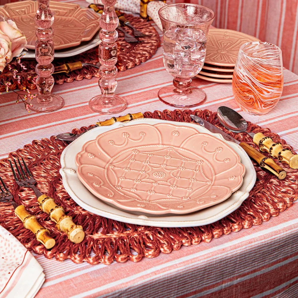 As newlyweds and self-proclaimed romantics, Capucine and David Gooding founded Juliska in 2001 with a small collection of mouth-blown Bohemian glasses. Today, it’s the tableware and home brand every good hostess needs to know. Handwoven with rich, natural fibers, the Straw Loop Oval Placemat in Coral is energized by rich texture, begging to be layered with chic patterns and color.