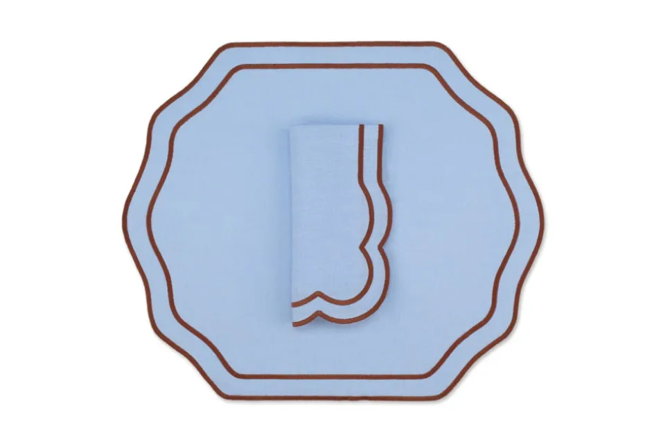 Founded in 2020 by three friends, TriChi looks to the intersection of the Mediterranean, Atlantic, and Anatolia for the inspiration for their superior clothing and homewares. Environmentally friendly manufacturing, the highest quality fabrics, and a passion for great design combine in the brand’s uniquely tasteful approach. TriChi’s napkins and placemat sets are exemplary tabletop additions, regardless of how formal or casual the affair. The Stucco Linen Napkin and Placemat, Set of 4 features placemats with a simple, octagonal design, featuring a gently scalloped edge and delightful trim, and napkins to match.