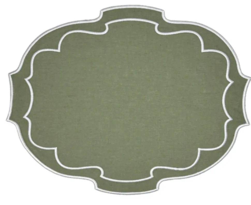 Swiss linen, fine cotton, and tasteful refinement define Flying Sheep Country linens and tabletop items. Founded by two sisters who spent their youth spotting sheep in the English countryside, the brand celebrates both luxury and whimsy in its vibrant prints, exceptional embroidery, and traditional artisanship. Boasting an artful, arabesque silhouette, and adorned with exquisite white embroidery, the Studio Collection – Belle Placemat in Dark Green, Set of 4 adds a refined touch to your tabletop during the holiday season and beyond.