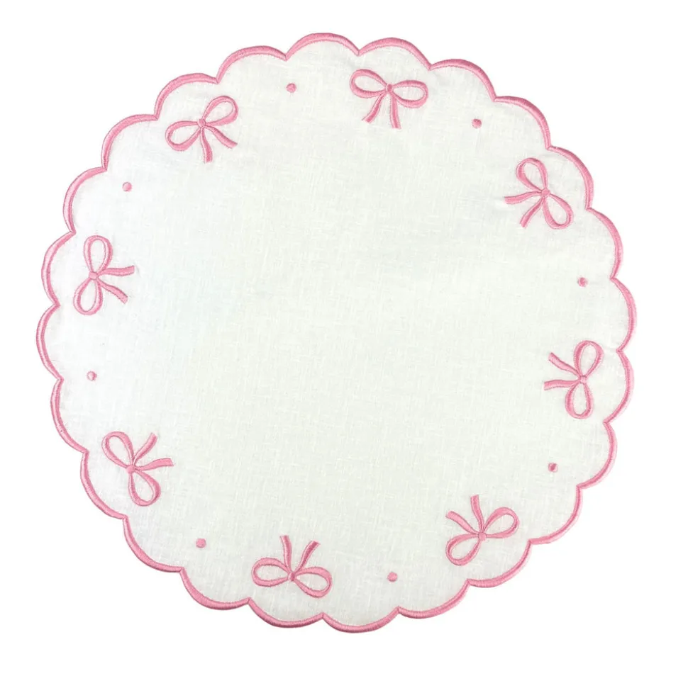 Swiss linen, fine cotton, and¬†tasteful refinement¬†define Flying Sheep Country‚Äôs linens and tabletop items. Founded by two sisters who spent their youth spotting sheep in the English countryside, the brand celebrates both luxury and whimsy in its vibrant prints, exceptional embroidery, and traditional artisanship. The Studio Collection – Juliet Bows Placemats in White and Pink, Set of 4¬†is bordered in¬†a layer of delicately embroidered¬†bows¬†and dots, effortlessly infusing your table with whimsy and warmth.