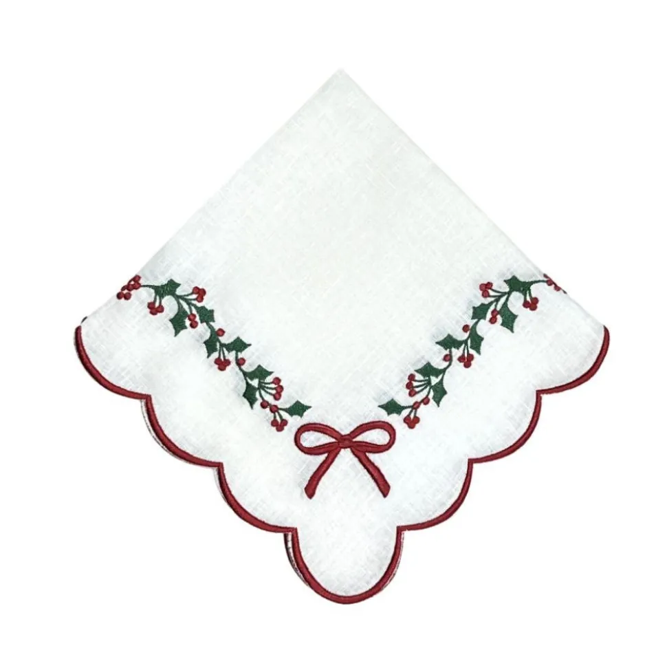 Swiss linen, fine cotton, and tasteful refinement define Flying Sheep Country linens and tabletop items. Founded by two sisters who spent their youth spotting sheep in the English countryside, the brand celebrates both luxury and whimsy in its vibrant prints, exceptional embroidery, and traditional artisanship. Adorned with exquisite holiday embroidery, make your table merry and bright with the Studio Collection – Linen: Holly & Bows in Napkin, Set of 4.