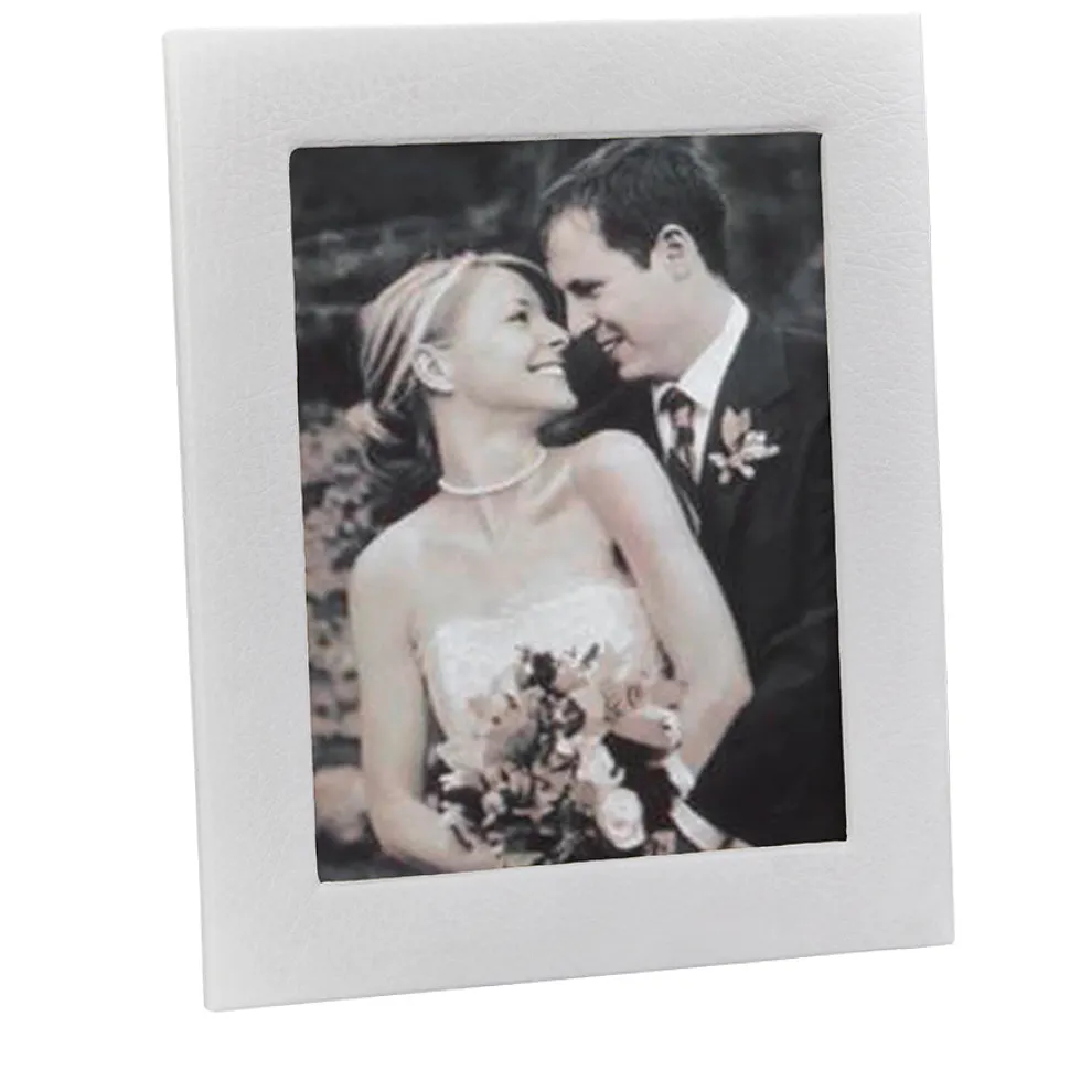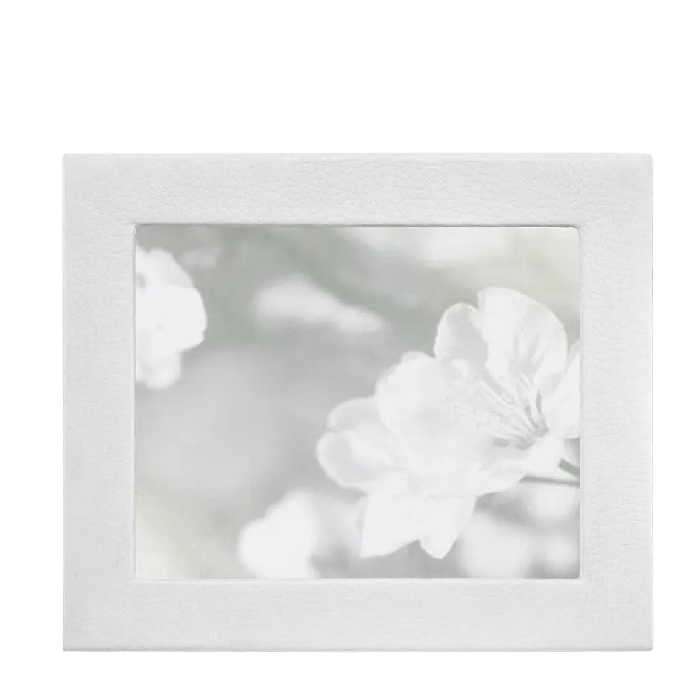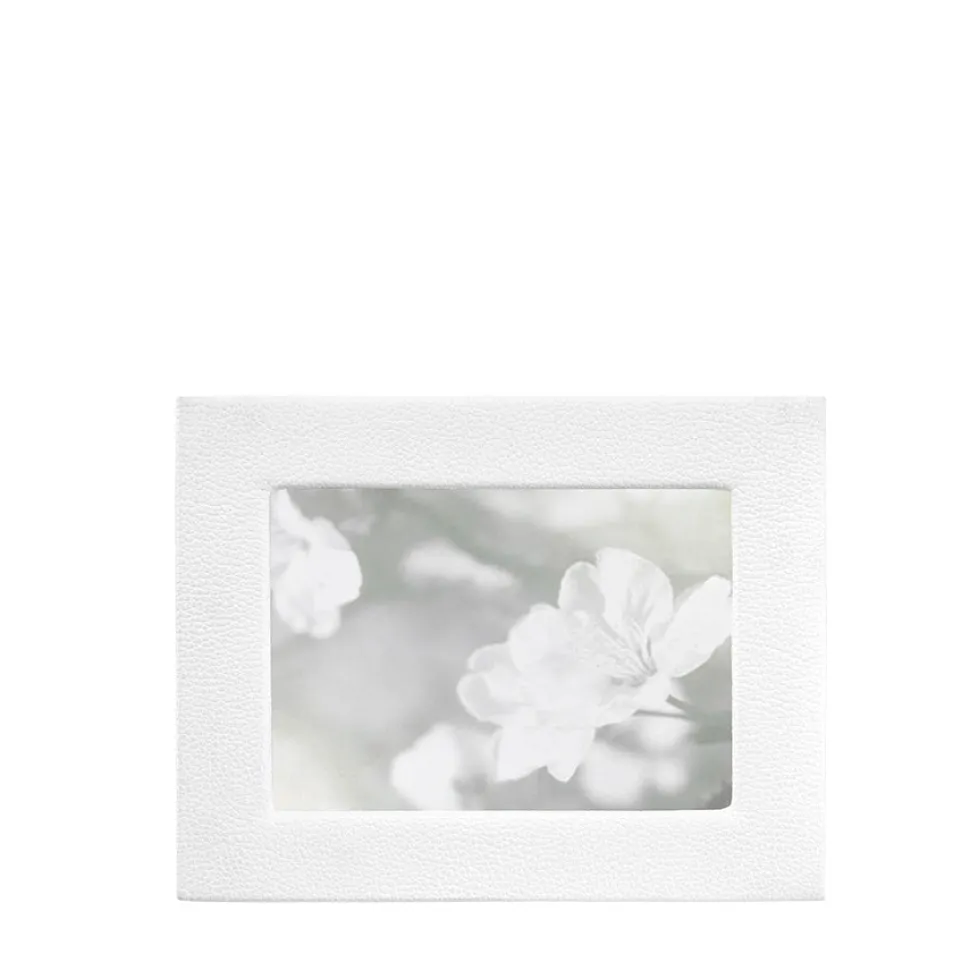 Founded in 1969, Graphic Image’s notebooks and accessories are united by the finest writing text paper, meticulously crafted smyth-sewn binding, and clean design. Working with tanneries in Italy and France, and embracing at once the unconventional and the traditional these are products that offer profound quality, functionality, and unyielding style. This elegant Studio Frame in White Pebble Grain Leather accents your favorite photograph. This handcrafted frames is wrapped in leather on both sides and features a sturdy metal easel, and a convenient rear drop-down door for easy and frequent access to photos.