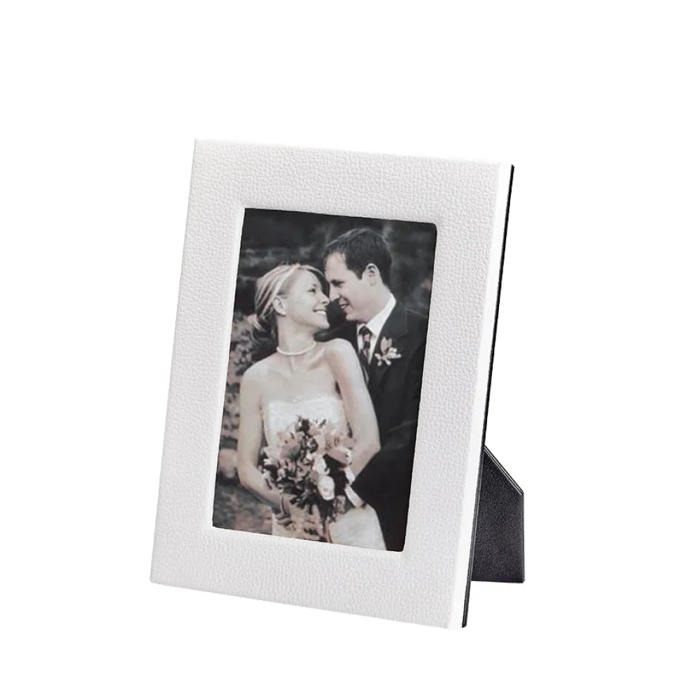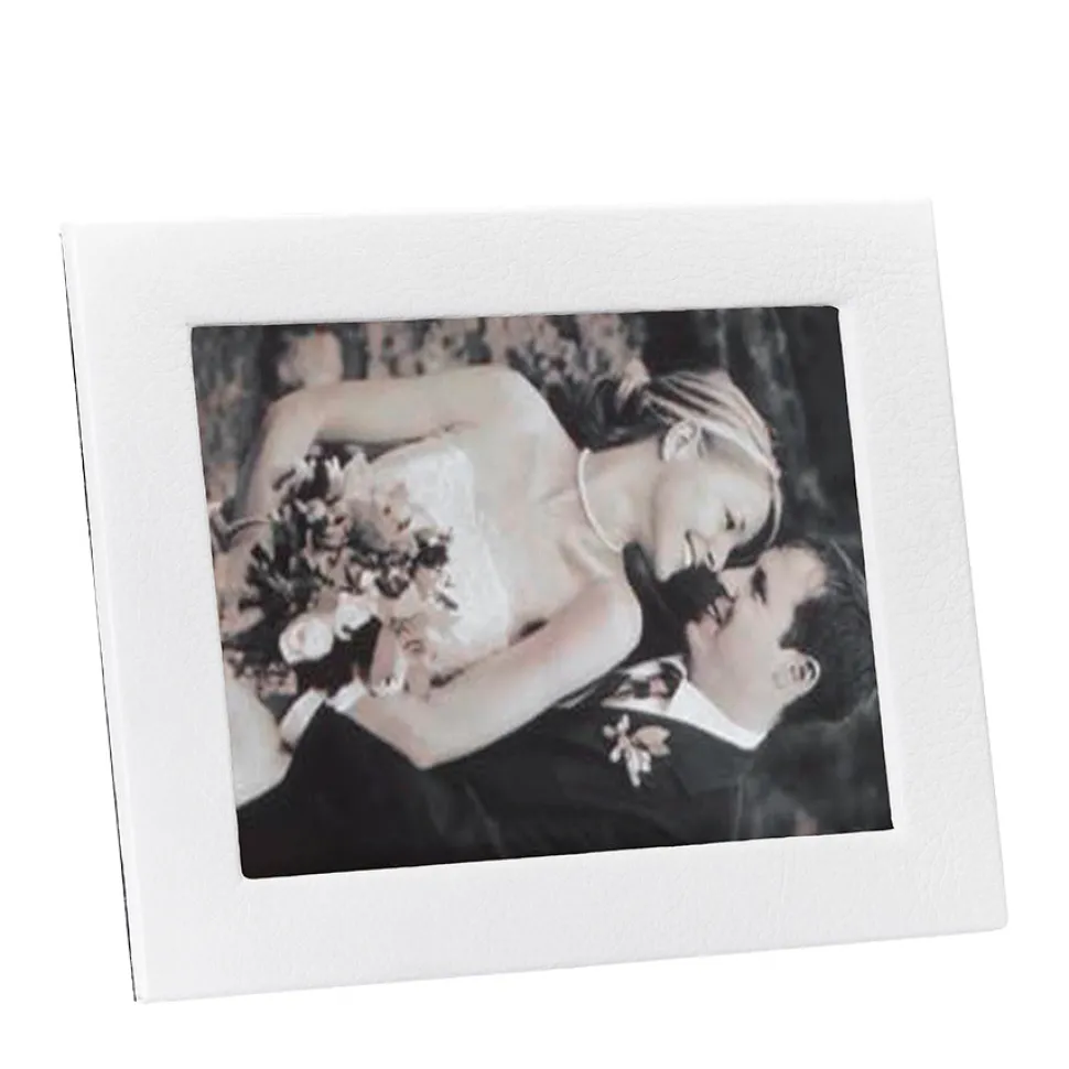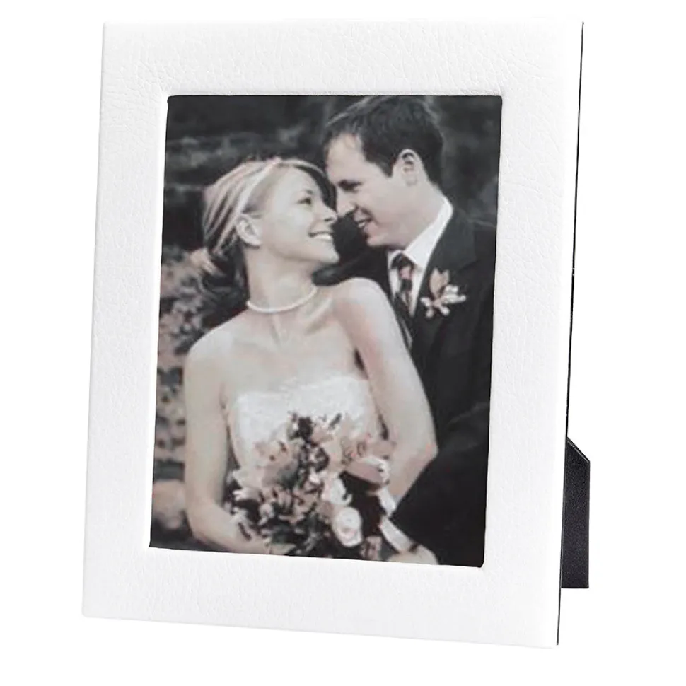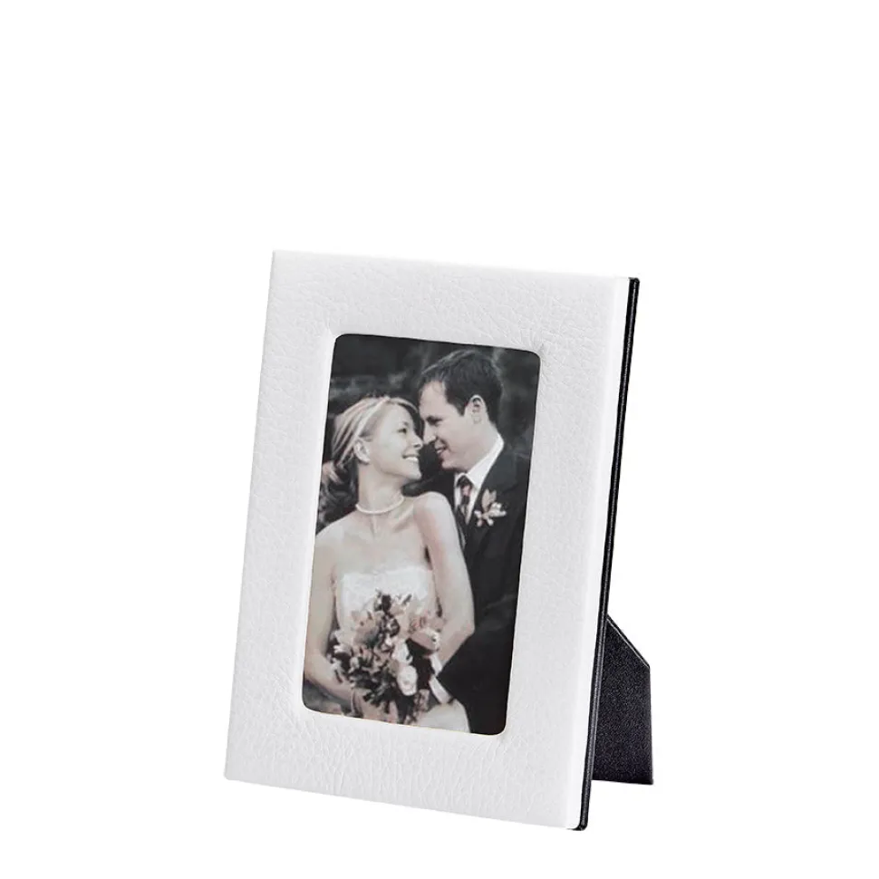 Founded in 1969, Graphic Image’s notebooks and accessories are united by the finest writing text paper, meticulously crafted smyth-sewn binding, and clean design. Working with tanneries in Italy and France, and embracing at once the unconventional and the traditional these are products that offer profound quality, functionality, and unyielding style. This elegant Studio Frame in White Pebble Grain Leather accents your favorite photograph. This handcrafted frames is wrapped in leather on both sides and features a sturdy metal easel, and a convenient rear drop-down door for easy and frequent access to photos.
