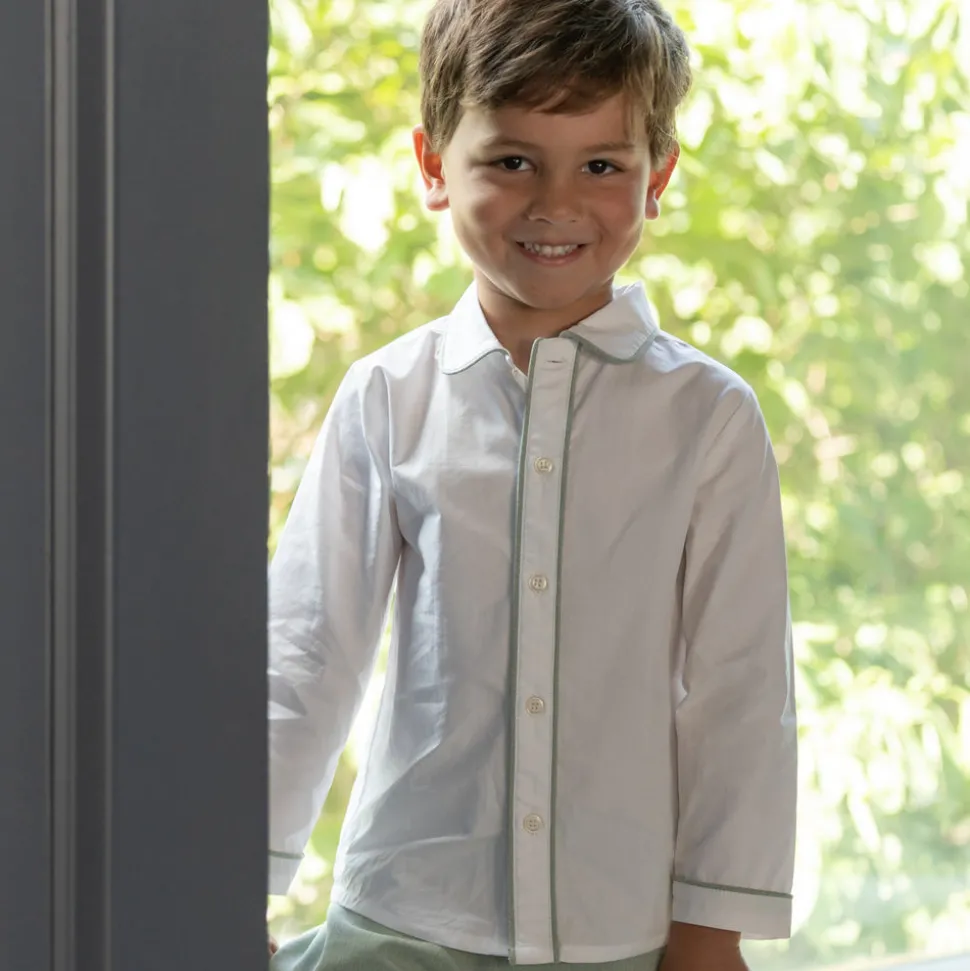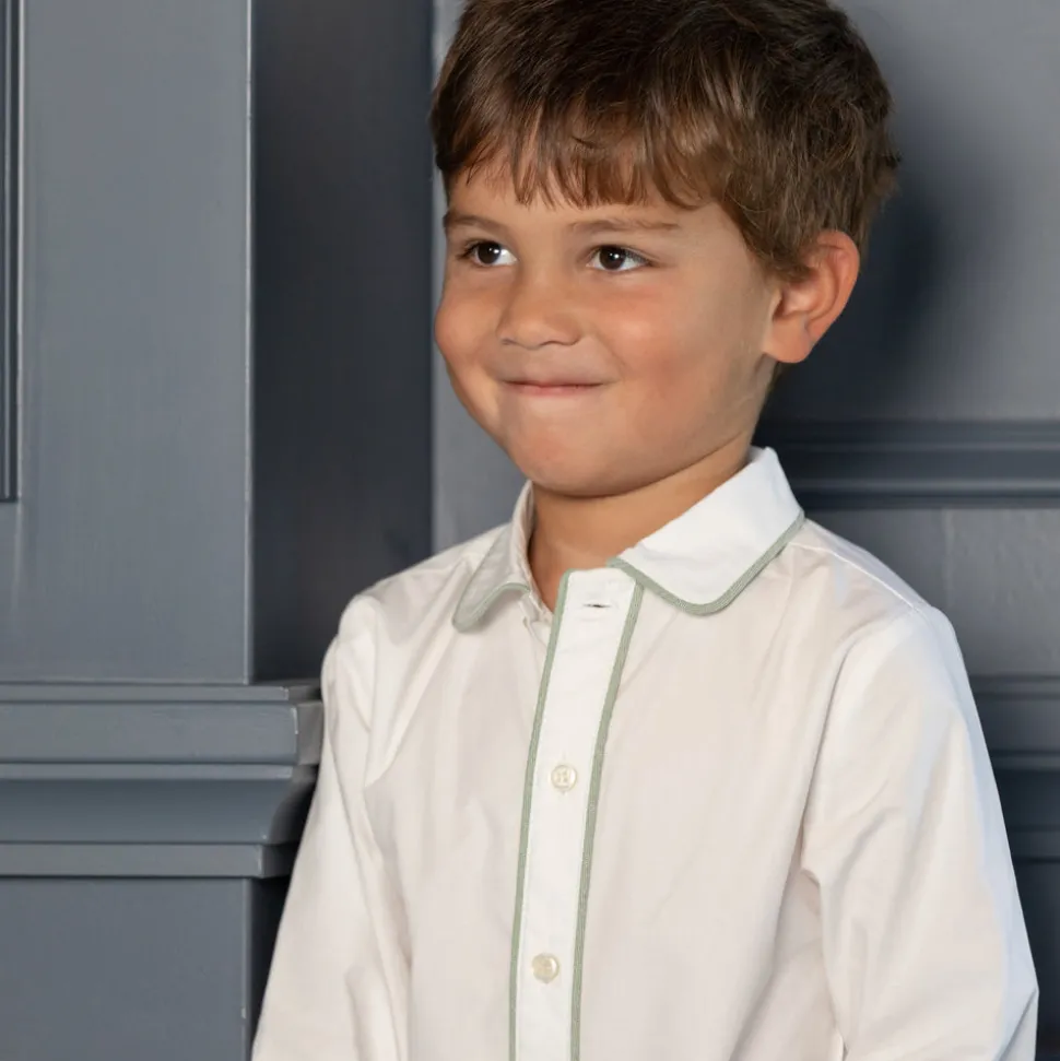 A celebration of the spirit of boyhood, the updated classics from Henry Duvall are curious, imaginative, and sweet. Full of character and playful details, these are easy-to-care-for clothes that families will love. Tailored for that in-between age, the Sullivan Shorts Set in Hanover Herringbone bridges the gap between babyhood and big-boy style. Featuring the Brendan Button Down with its signature rounded collar, this set strikes just the right balance of youthful sweetness and growing-up charm—ideal for boys who have outgrown Peter Pans but aren’t quite ready for a pointed collar. Coordinate with the Pippa Dress or Nora Dress for girls, or pair with sibling favorites like the James Henry Jon Jon or Bradford Trousers for polished family looks.