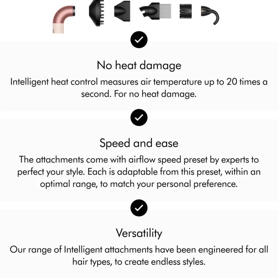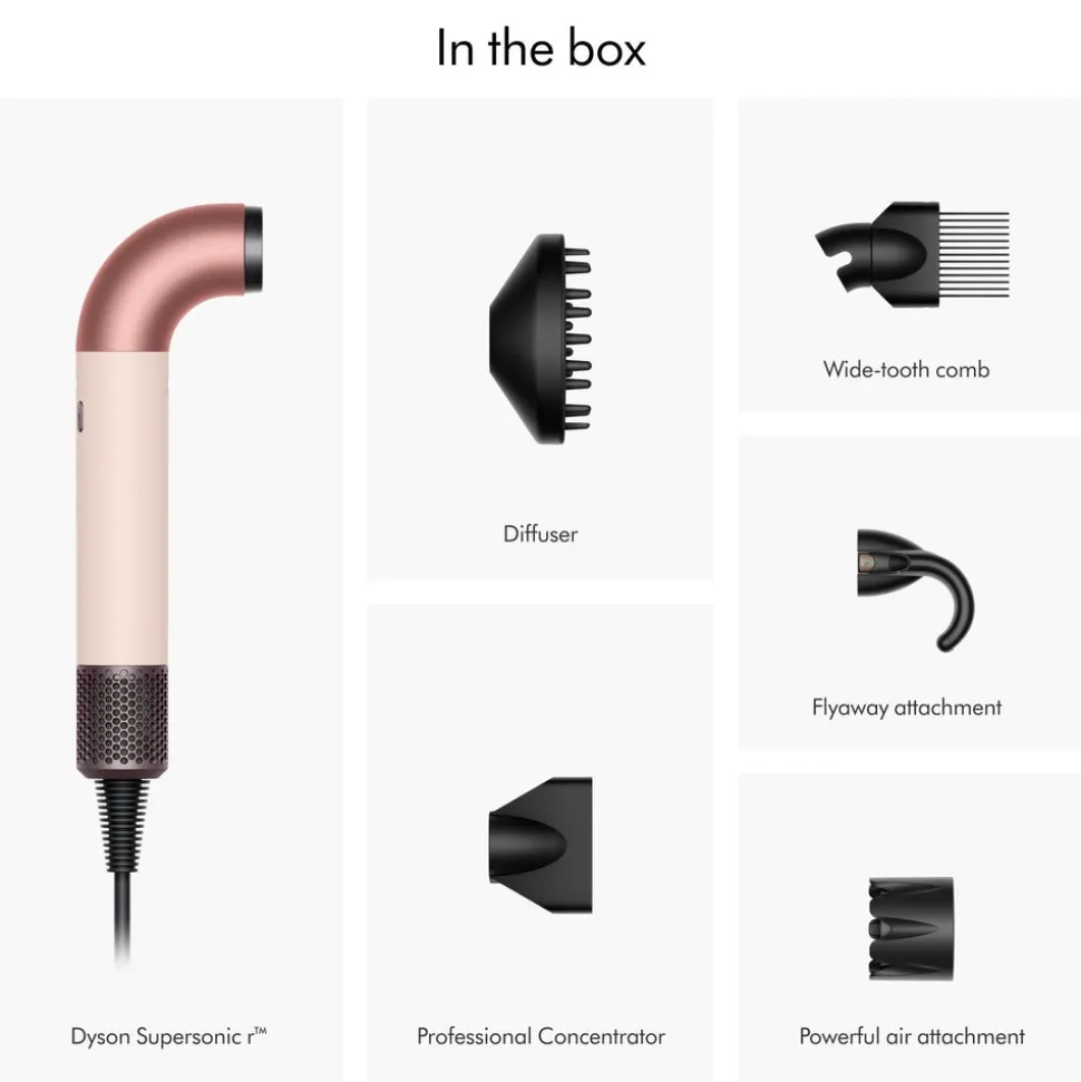Founded in 1991 by James Dyson in England, the Dyson brand designs and manufactures household appliances—engineering solutions to everyday problems, from capturing dirt and air pollution to reducing hair damage. Each Dyson product is innovated to set new standards, spanning whole-home cleaning, healthier hair styling, and more. The multi-function Supersonic R Precision Hair Dryer in Pink & Rose Gold is a re-engineered, lightweight format designed to streamline and evenly heat powerful airflow. The Dyson Hyperdymium™ motor produces high-pressure airflow for fast drying and a salon-quality finish, while five intelligent attachments are preset to the optimal temperature and airflow for precise styling.