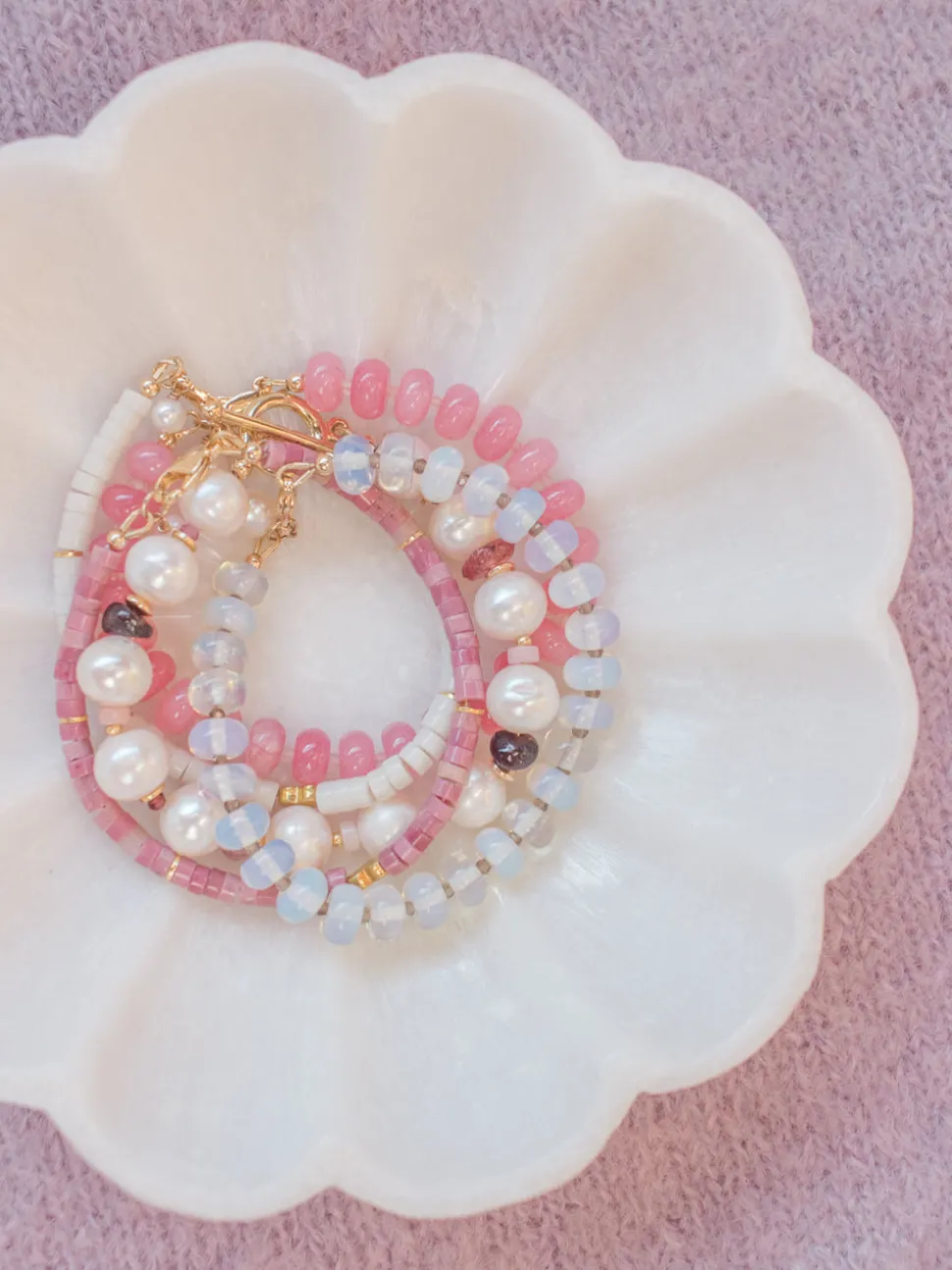From Newport, Rhode Island, designer Kerry McGauley uses her experience in the fashion industry and inspiration from the town’s picturesque shoreline to craft singular yet timeless pieces—shining at the most special events, and through your everyday. Boasting a subtle glow from opal and smoky quartz gemstones and a freshwater pearl charm, the Sutton Bracelet in Clear is romantic on its own or stacked with other bracelets.