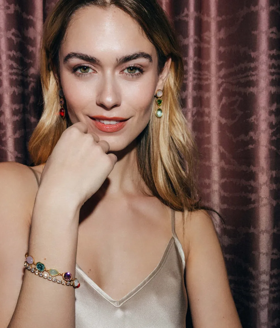 18K gold-plated brass. Mixed crystal and resin stones in assorted cuts. Lobster clasp with extender. Arrives in signature Loren Hope dust bag.