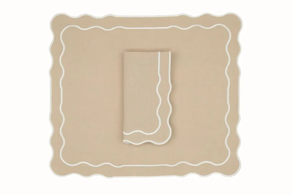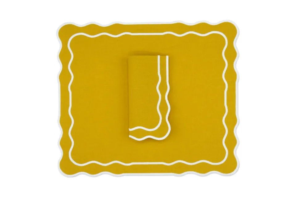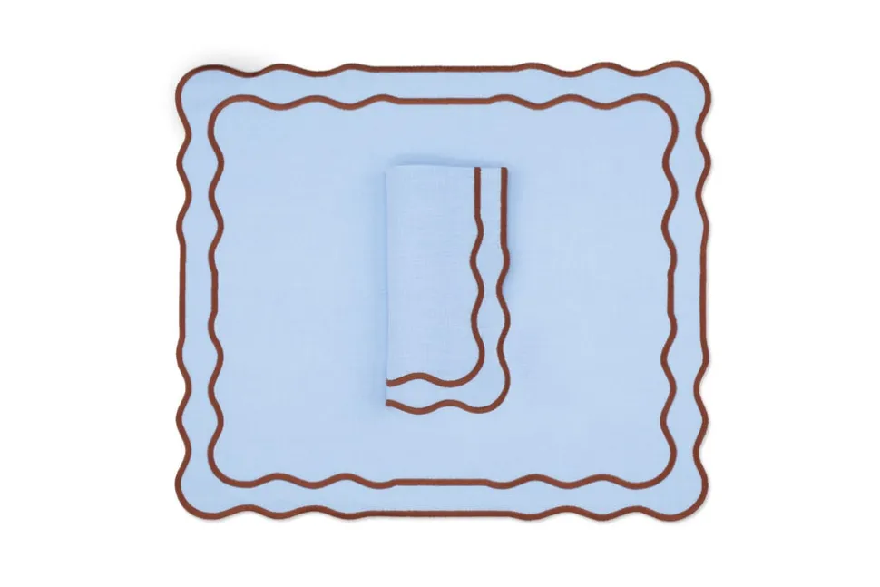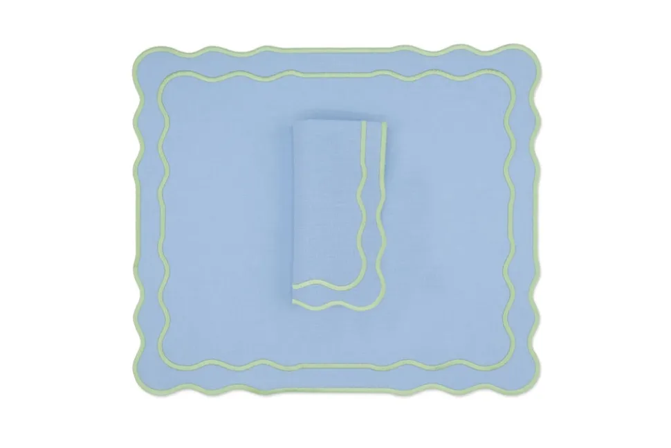 Founded in 2020 by three friends, TriChi looks to the intersection of the Mediterranean, Atlantic, and Anatolia for the inspiration for their superior clothing and homewares. Environmentally friendly manufacturing, the highest quality fabrics, and a passion for great design combine in the brand’s uniquely tasteful approach. TriChi’s napkins and placemat sets are exemplary tabletop additions, regardless of how formal or casual the affair. TheTableau Linen Napkin and Placemat, Set of 4 features placemats with a simple, rectangular design, featuring a gently scalloped edge and delightful trim, in attractive tones, and napkins to match.