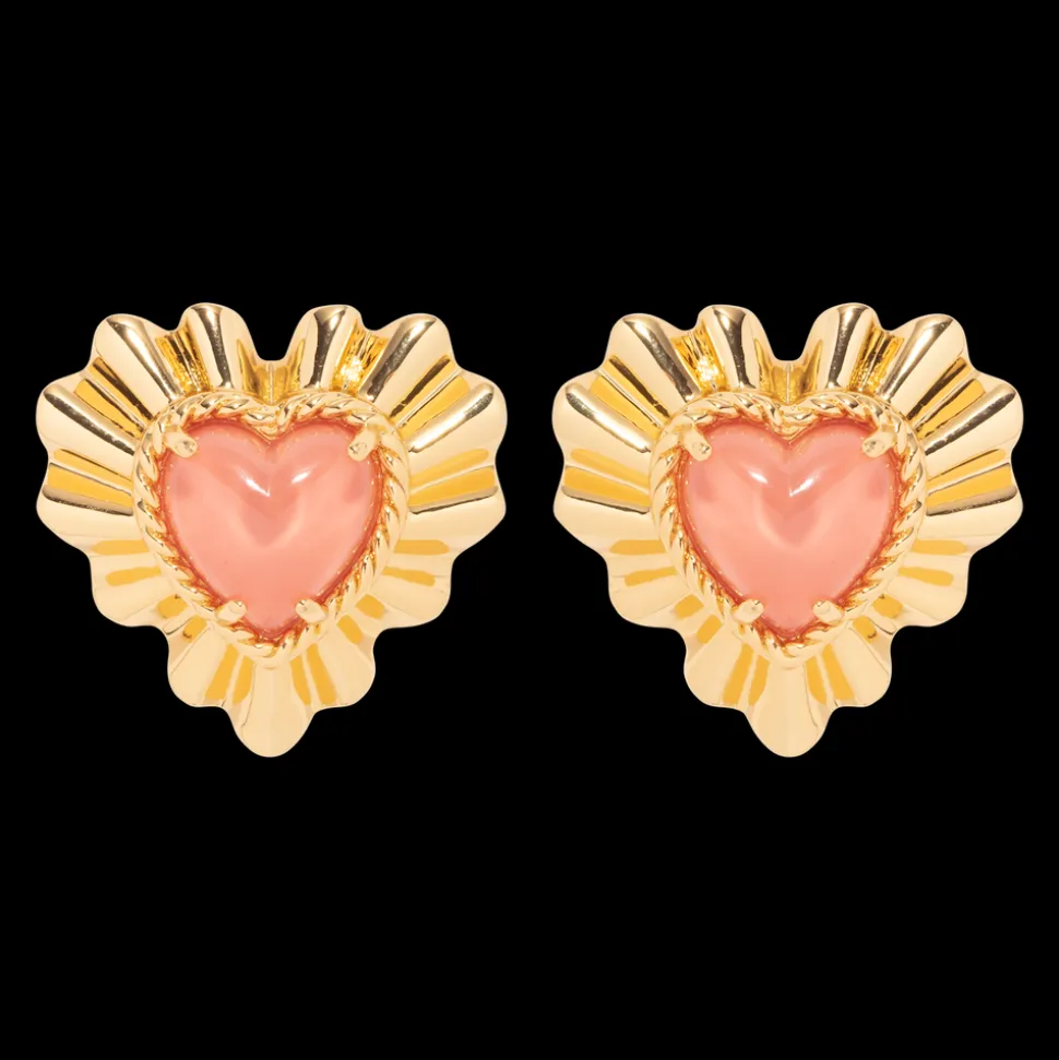 Loren Barham founded her jewelry line in 2005 as a means to reconnect with the vintage jewels that inspired her as a child. Today, the dynamic, artistic, original pieces of Loren Hope, designed at their flagship store in Newport, Rhode Island, serve as a bridge between nostalgia and thoroughly modern women everywhere. The Tallen Heart Earrings are inspired by 80’s glam and experimented with ways to make this mood super wearable for day-to-day. These studs feature the sweetest heart-shaped pink stone emitting rays of golden ruffles for a frilly, retro, yet very of-the-moment feeling.