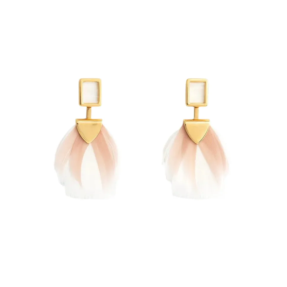18k-gold plated. All-natural and sustainably sourced feathers. Suitable for sensitive ears (nickel-free and lead-free). Metal silicone back.
