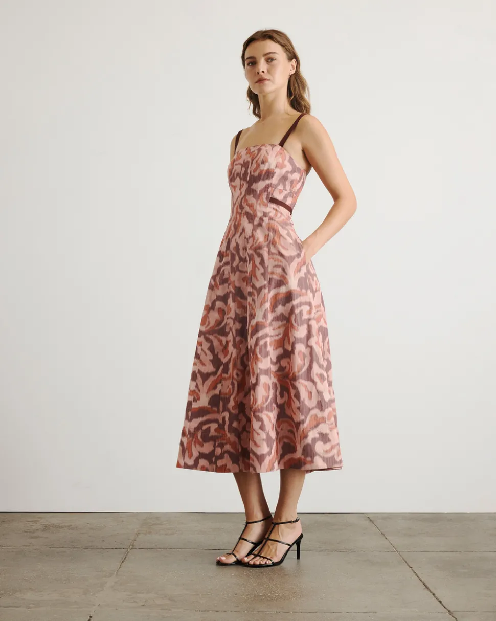 Creating clothing that inspires confidence, celebration, and community, Tanya Taylor is a New York-based womenswear brand whose mission is to provide practicality and style to a range of ready-to-wear in inclusive sizes. Each collection is thoughtfully designed through the artful use of color, texture, and original hand-painted prints. The Tavia Dress in Mahogany & Sugarcane Multi is a best-selling silhouette reimagined for fall with refined tailoring and feminine charm. Featuring paneled seaming, on-seam pockets, and a cinched waist with attached grosgrain ties, this A-line style offers polished ease for every occasion.