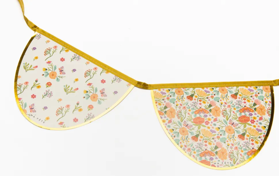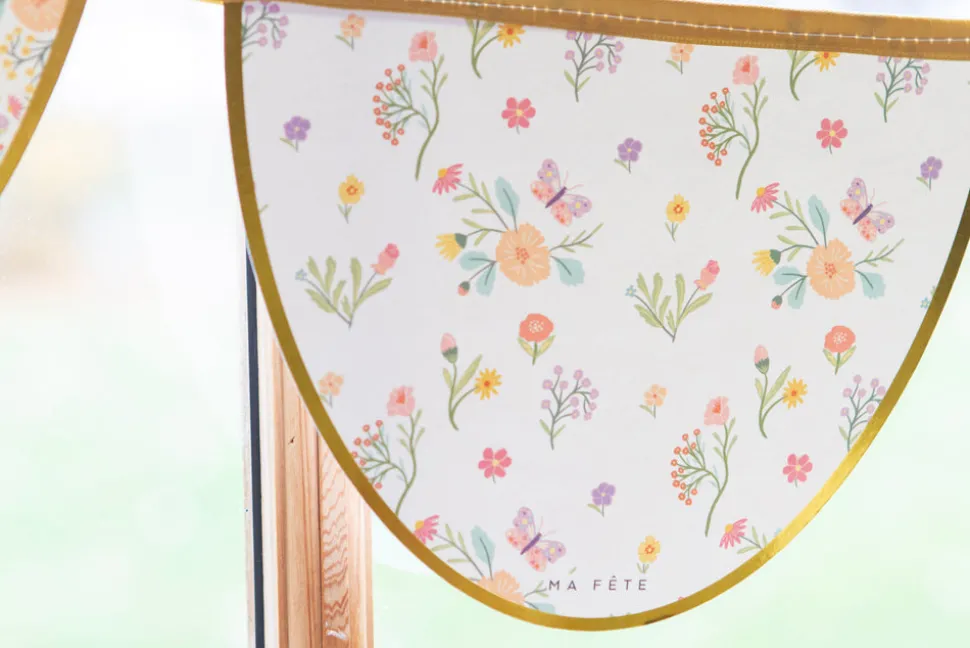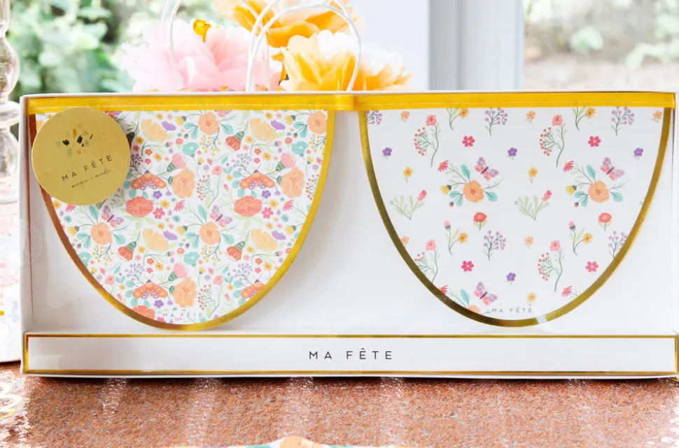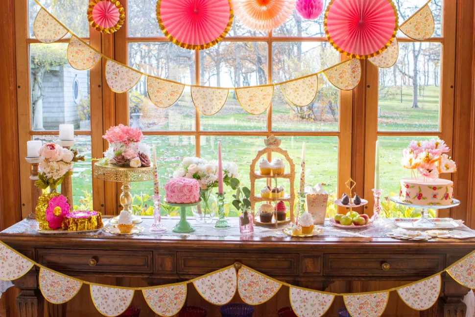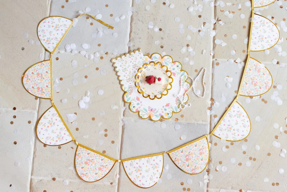 A mom with two young children, Anna Bacon found herself bored with the same old party themes, which is how Ma Fête (“My Party” in French) was born. She creates boxes of matching party materials—plates, cups, napkins and more—with fun, kid-friendly motifs, helping parents throw the most memorable parties, with minimal effort. The Tea Party series adds sophisticated touches to your little one’s elegant celebration. Decorate the party room with the scalloped Tea Party Decorative Garland, complete with floral patterns and gold foil edges to match the dinner and dessert plates.