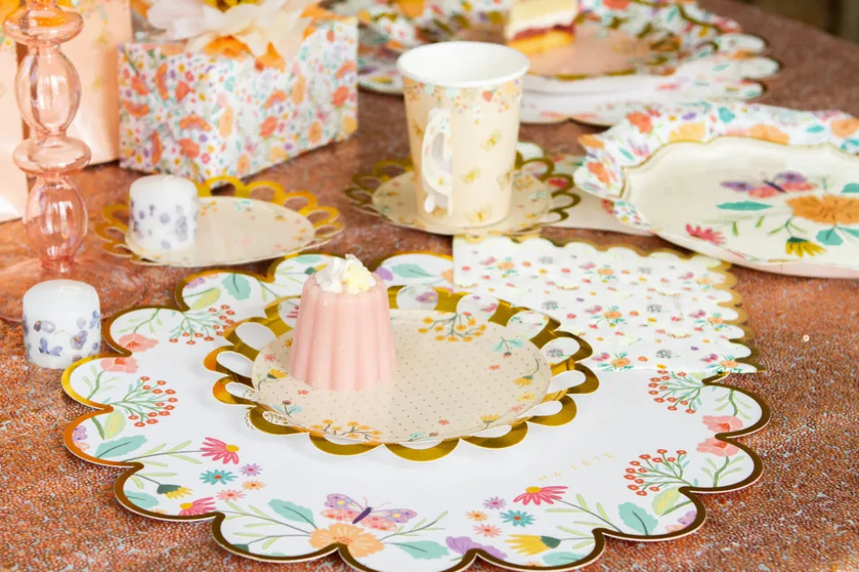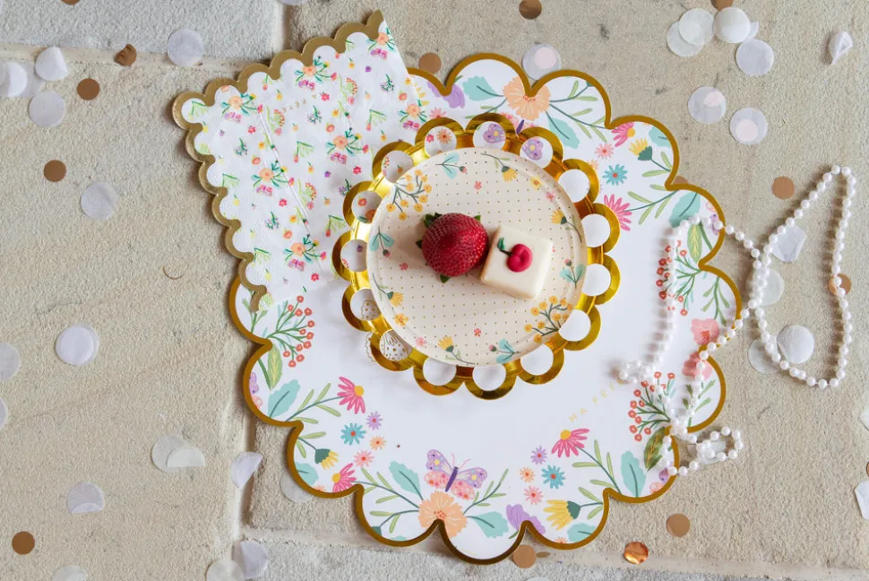 A mom with two young children, Anna Bacon found herself bored with the same old party themes, which is how Ma Fête (“My Party” in French) was born. She creates boxes of matching party materials—plates, cups, napkins and more—with fun, kid-friendly motifs, helping parents throw the most memorable parties, with minimal effort. The Tea Party series adds sophisticated touches to your little one’s elegant celebration. Time for cake? The dessert plates come in two gorgeous designs with lace edges and gold foil details.